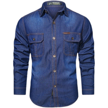 New Spring Men Outdoor Multi-pocket Denim Tooling Shirts Man Long-sleeved Denim