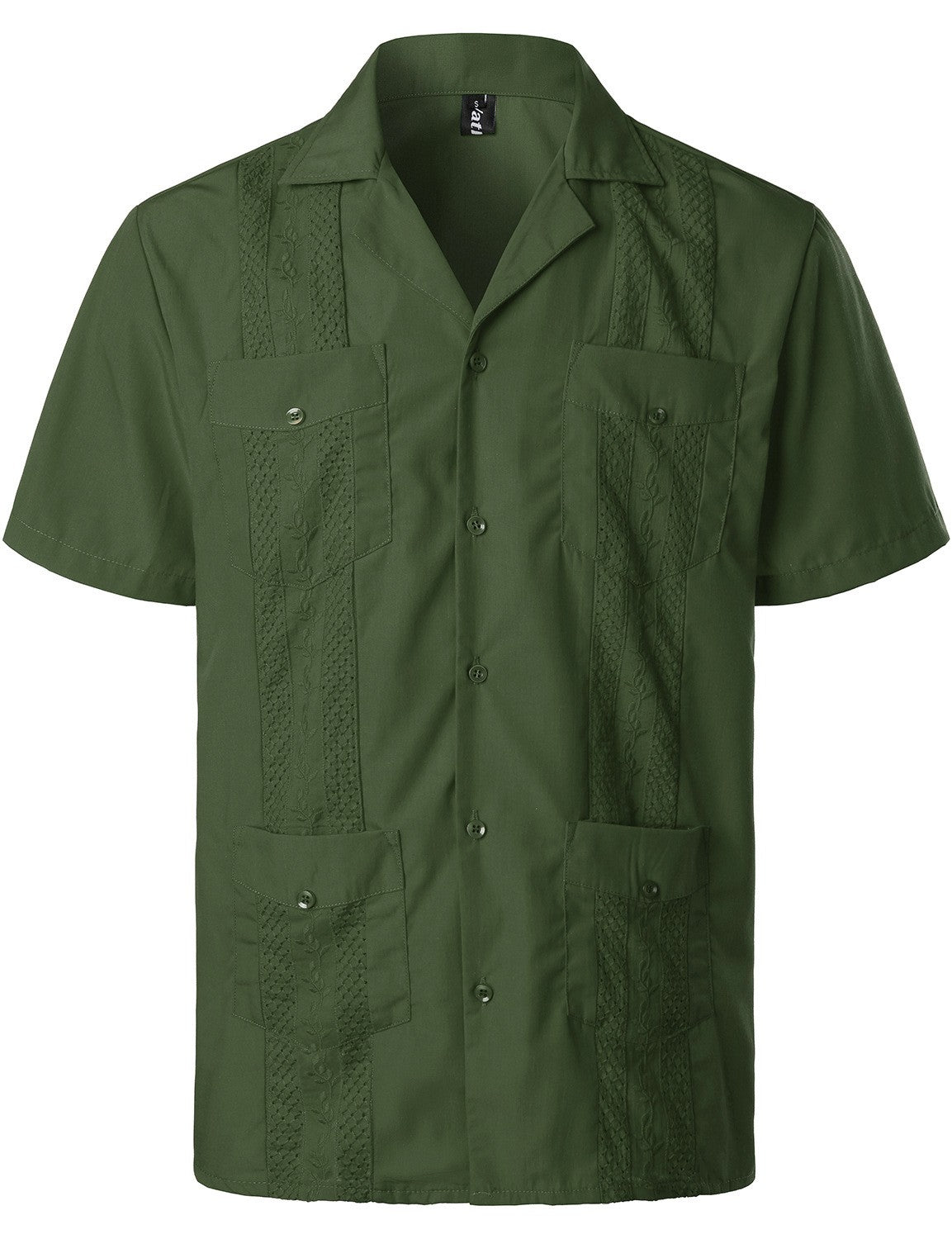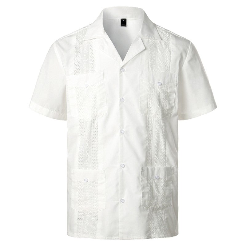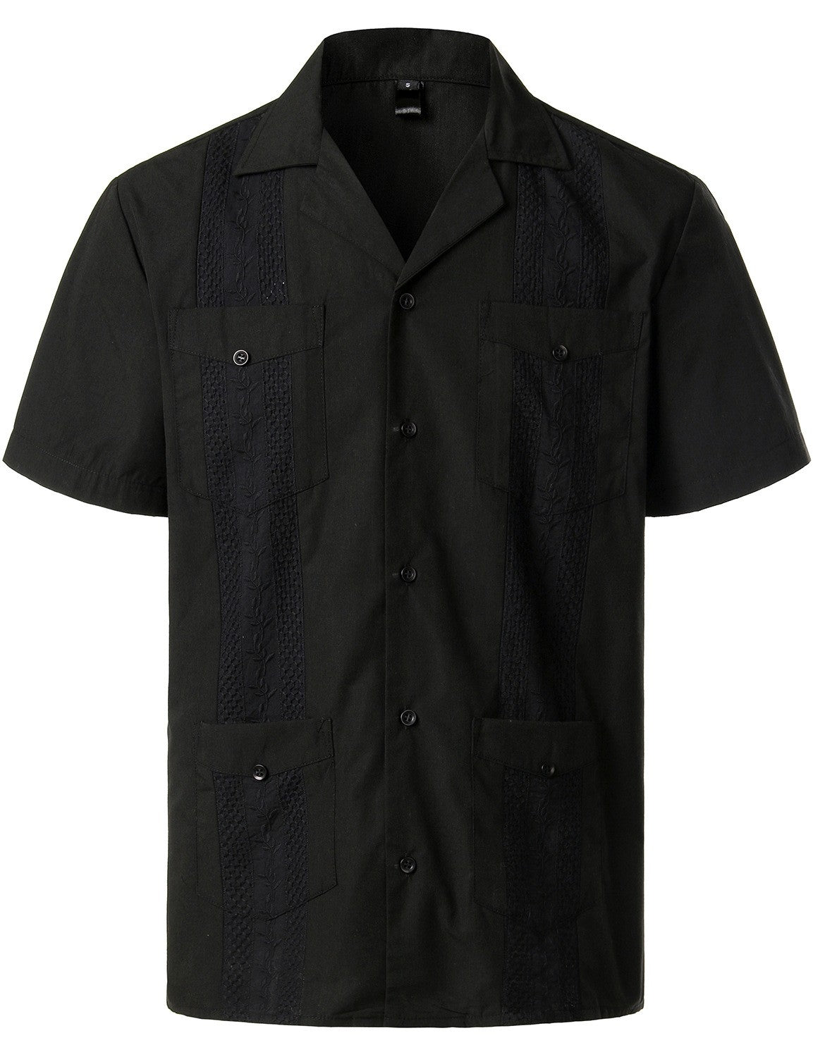 Men's Traditional Cuban Camp Collar Guayabera Shirts Short Sleeve Embroidered Mexican Caribbean Style Beach Shirts with 4 Pocket