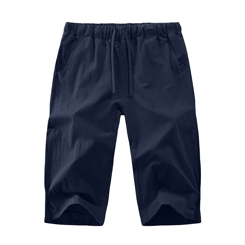 Summer Loose Solid Color Breathable Capri Shorts for Men's Sports Casual Breathable Shorts Men Clothing Gym Shorts