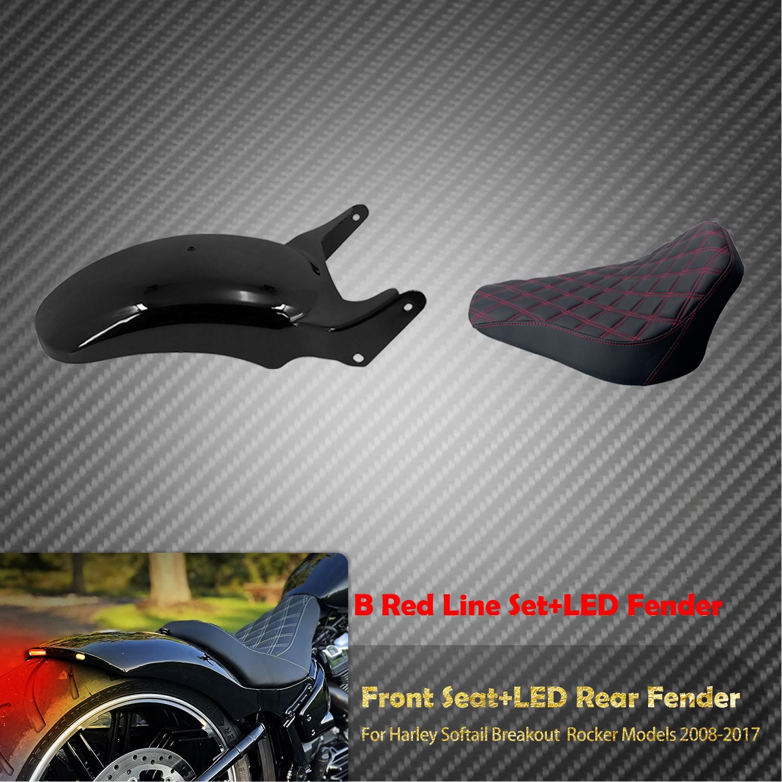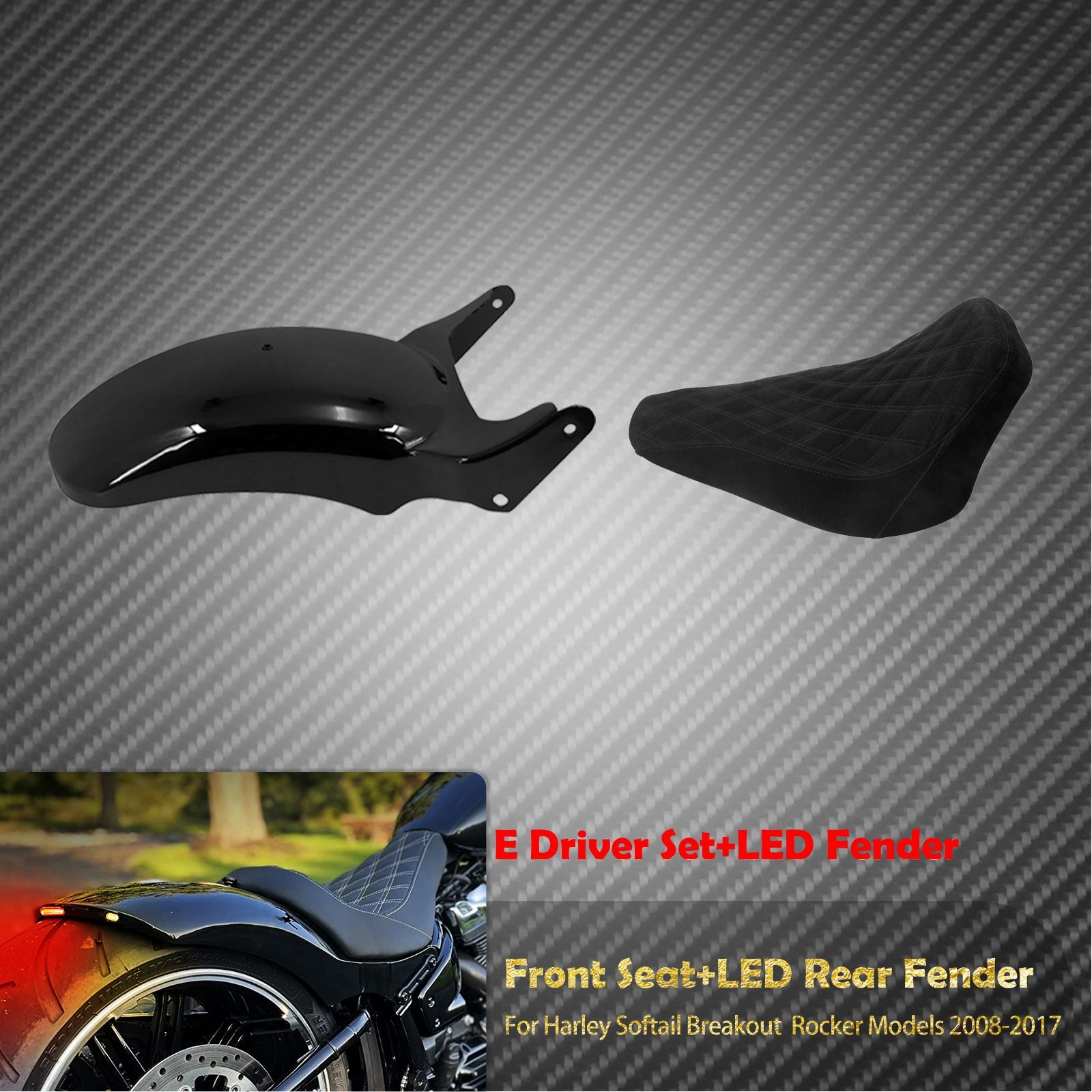 Motorcycle Driver Solo Seat Rear LED Light Fender With Brake Turn Signal Lamp Set For Harley Softail Breakout Rocker 2008-2017