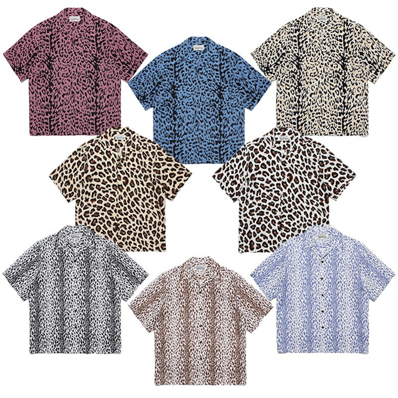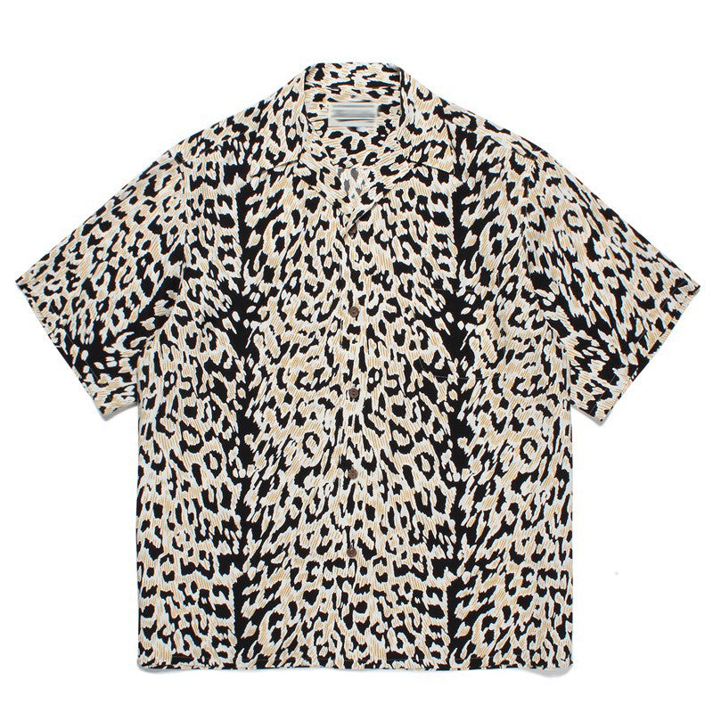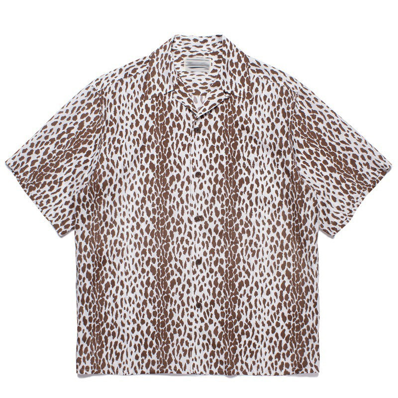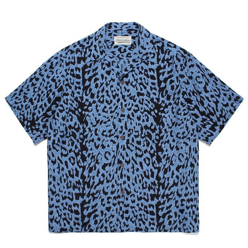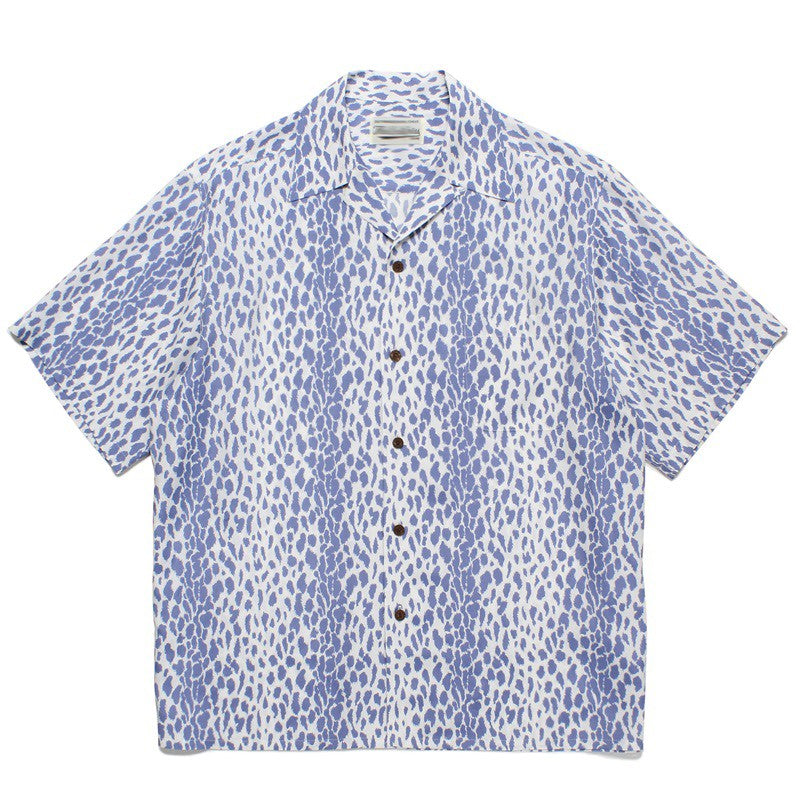 Pdmcms 23ss Gradient Leopard Print High Street Style Casual Handmade Silk Hawaiian Short Sleeved Shirt For Men