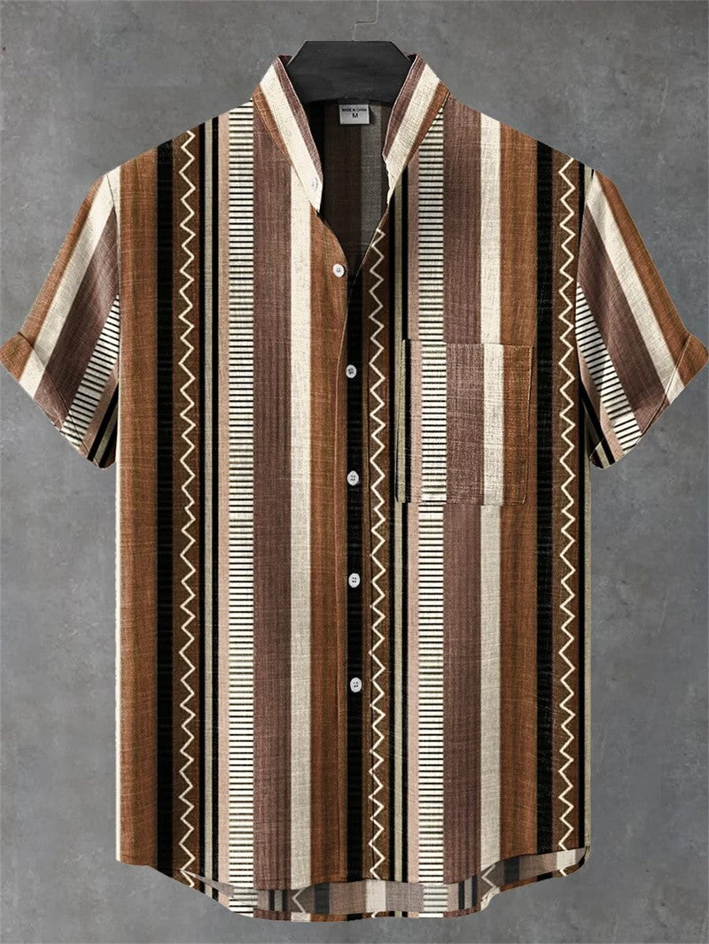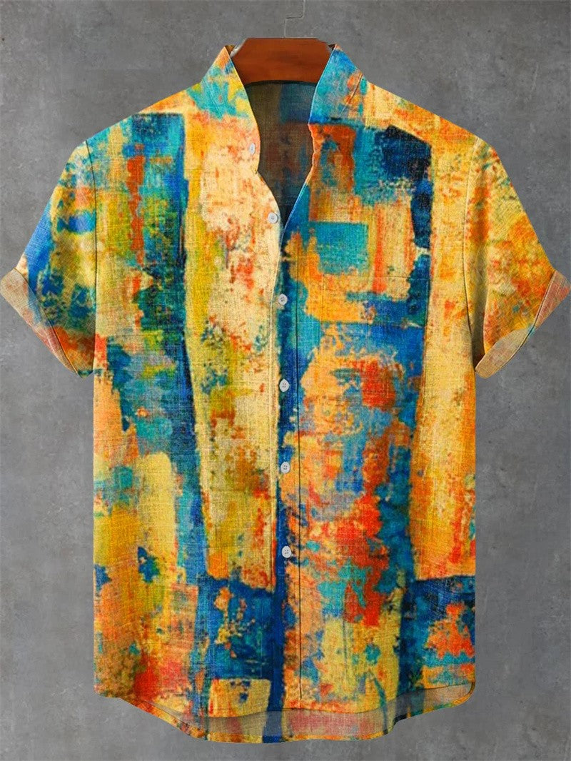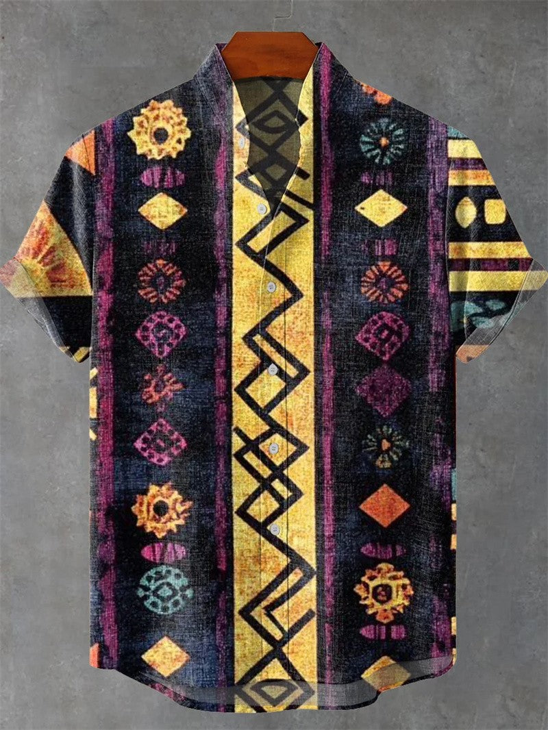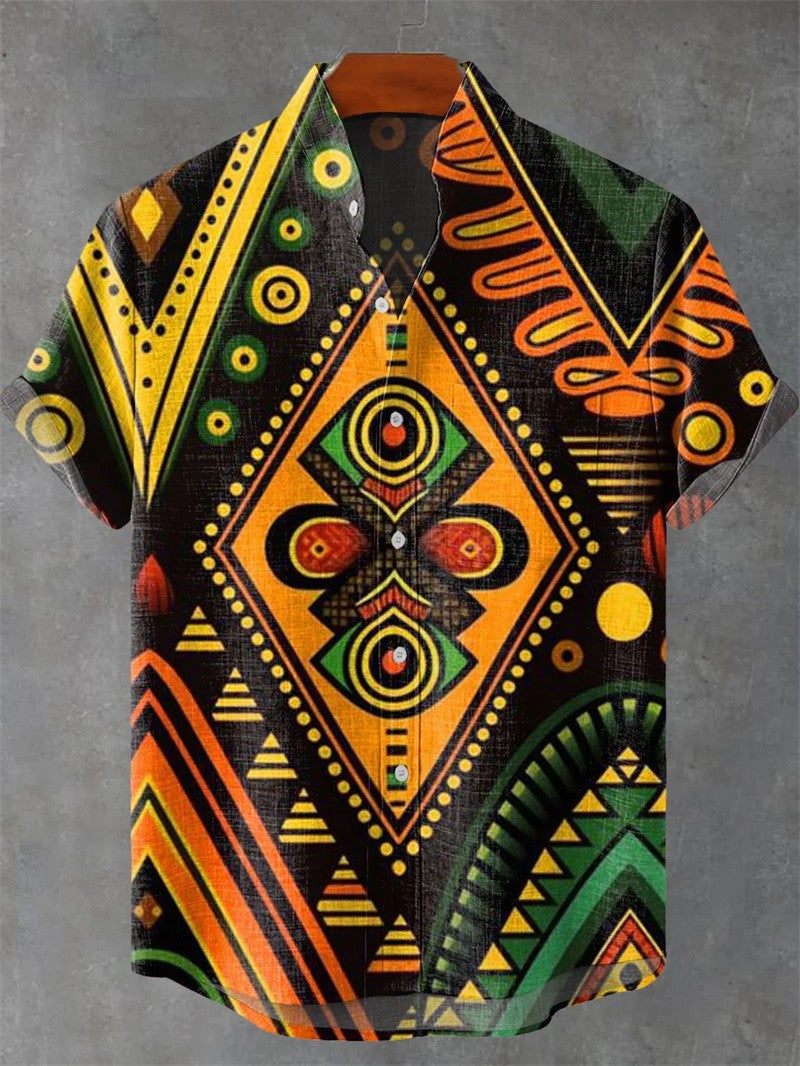 Geometric Print men's short-sleeved Shirt Beach Casual Hawaiian Lapel Top Large Size 2024 New Style