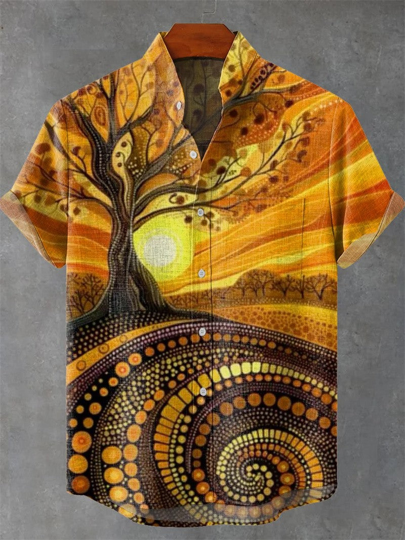 Summer Men's Shirt Coconut Tree 3D Print Casual Short Sleeve Lapel Tops Beach Casual Hawaiian Shirt Men Oversized Shirts For Men