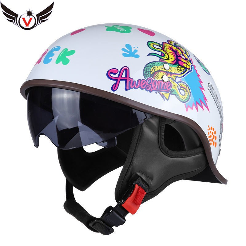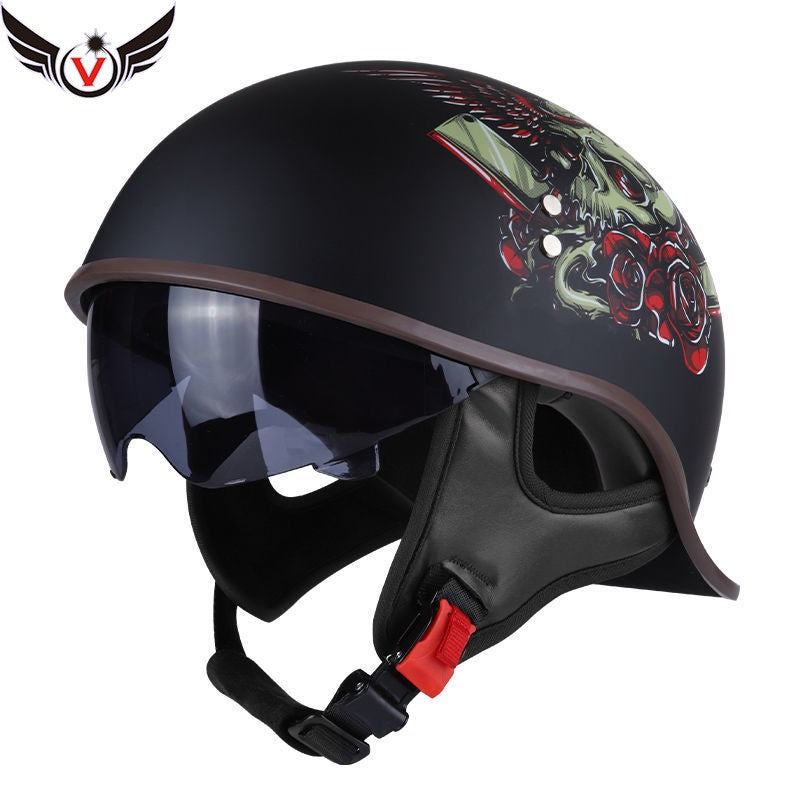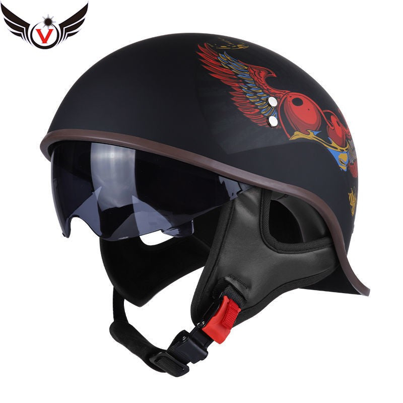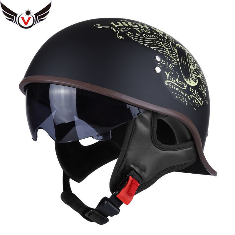 V Half-helmet for Harley Motorcycle Cocked Helmet Retro Helmet Lightweight Four Seasons Unisex Helmet Motorcycle Accessories