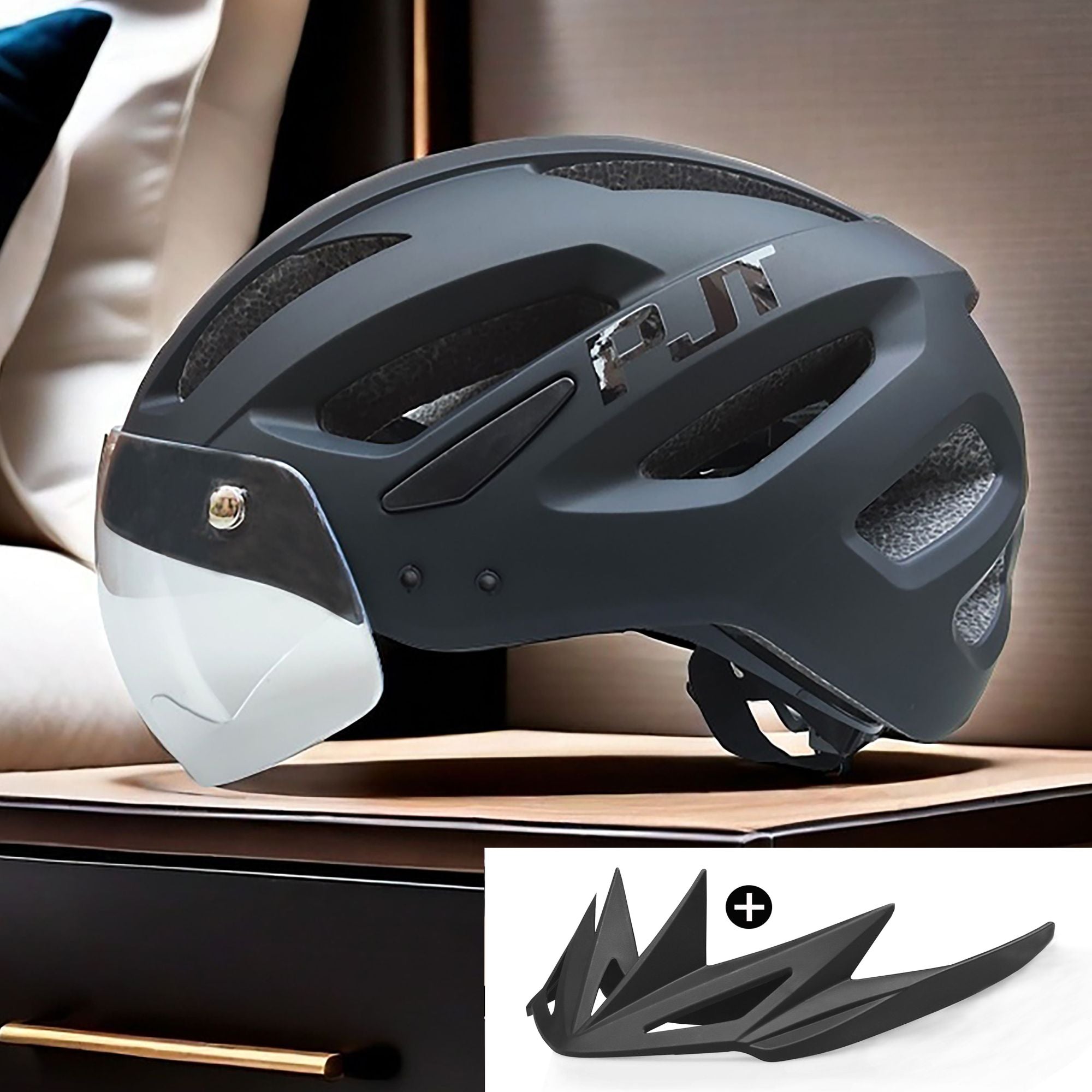 PJT Adult Bike Helmet With Rechargeable LED Rear Light Dual Mode Goggle Cycling Helmet MTB Lightweight Breathable Bicycle Helmet