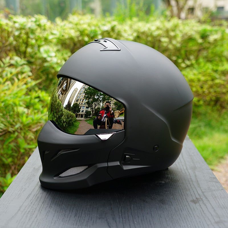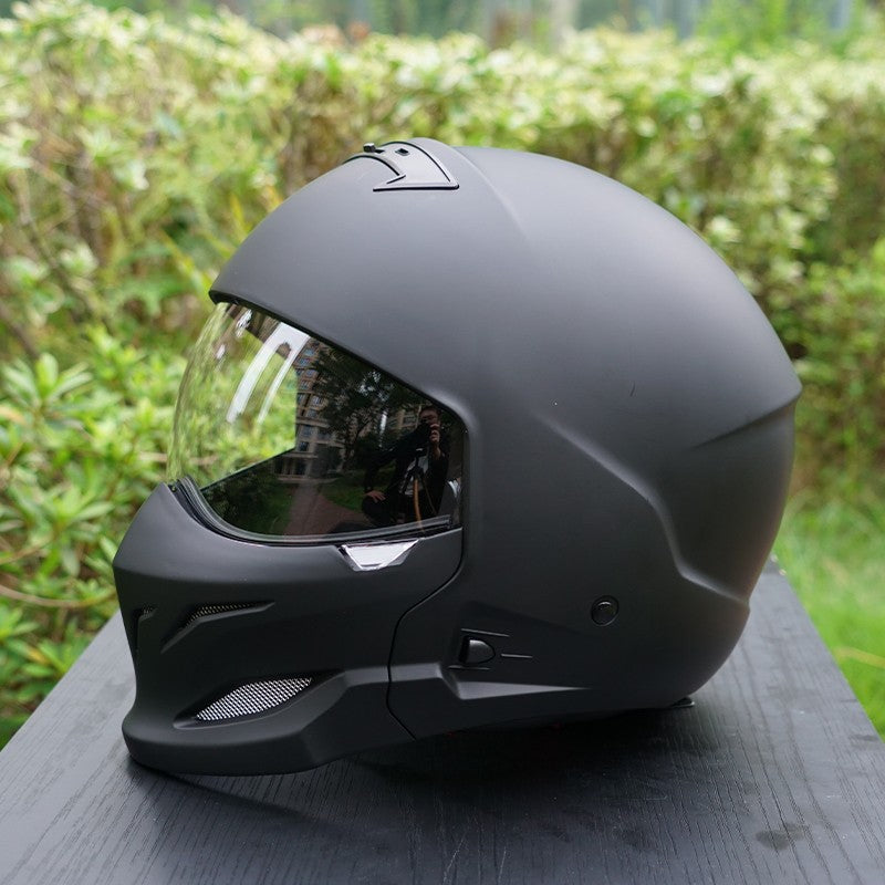 Black Matte Motorcycle Helmet Men Stylish Full Face Winter Removable Front Face