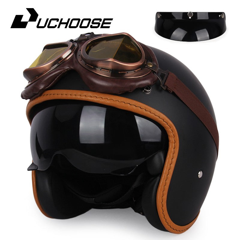 uchoose 3/4 retro helmet, motorcycle opening Vintage Motorcycle Helmet for Men & Women, Classic Retro Open Face Design