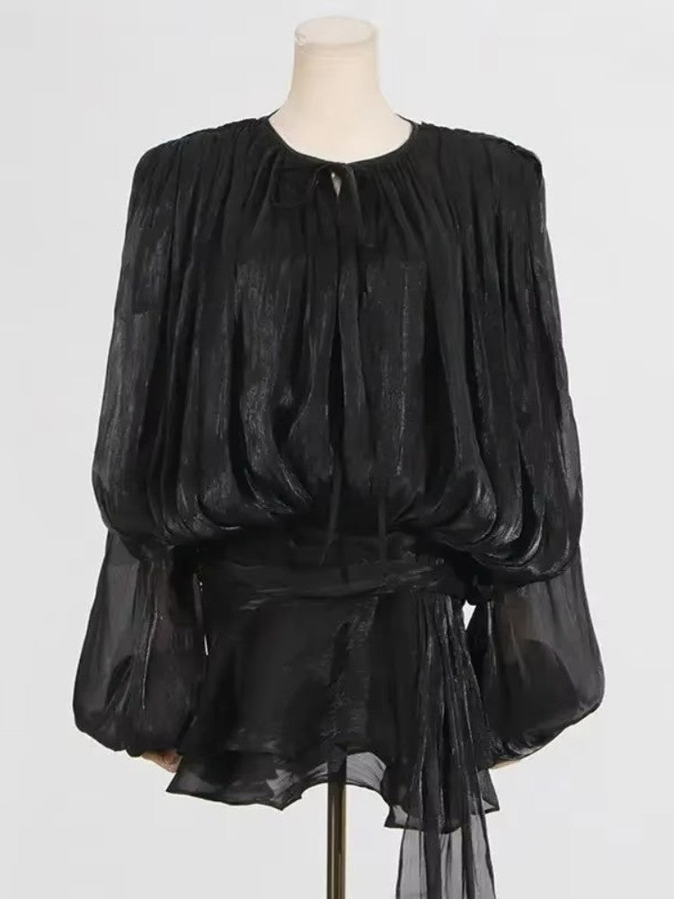 Elegant Ruffles Shiny Mini Dresses Fashion Solid Long Sleeve Lace Up V Neck Plea