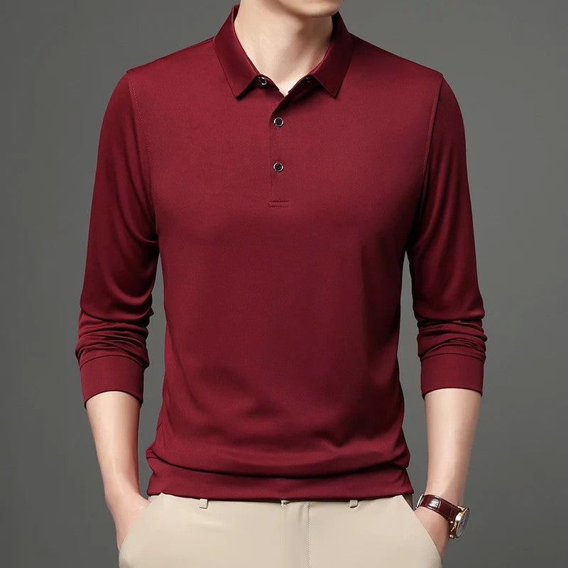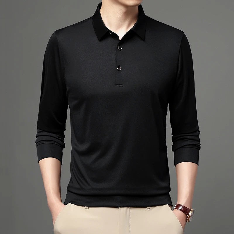 • Spring and Autumn Long Sleeve Polo Shirt Polo Collar Solid Men's Long Sleeve T-shirt
