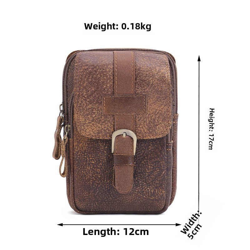 New Vintage Men's Cow Leather Waist Bag Male Outdoor Sports Waist Packs For Men Wear Resistant Mobile Phone Bag