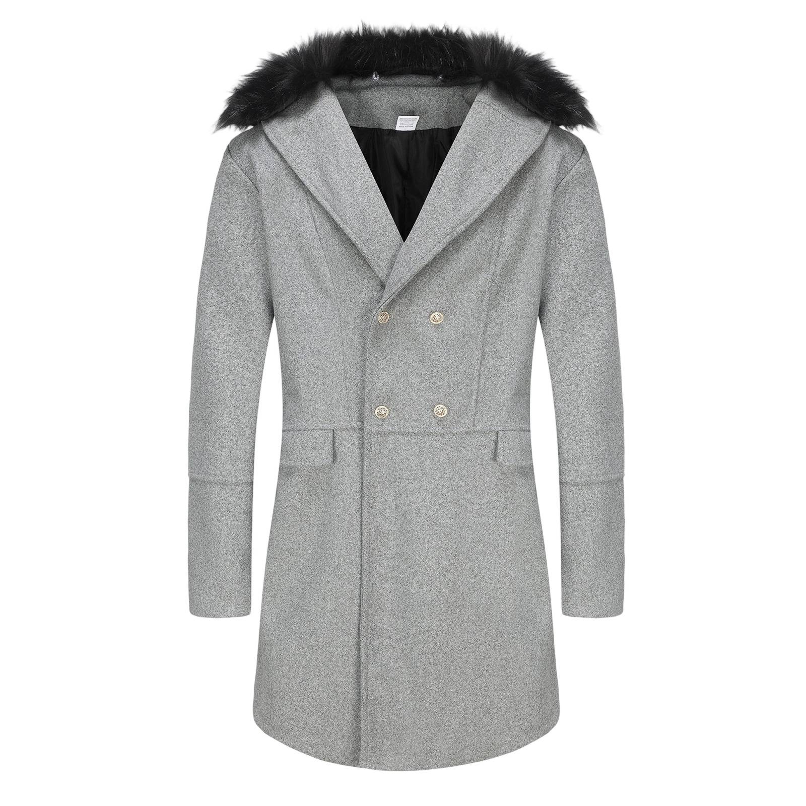 Men s Classic Double Breasted Trench Coat with Removable Fur Collar Mid-Length Wool Blend Overcoat for Winter Warmth
