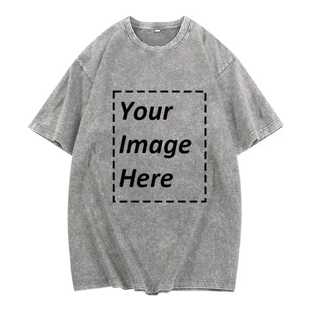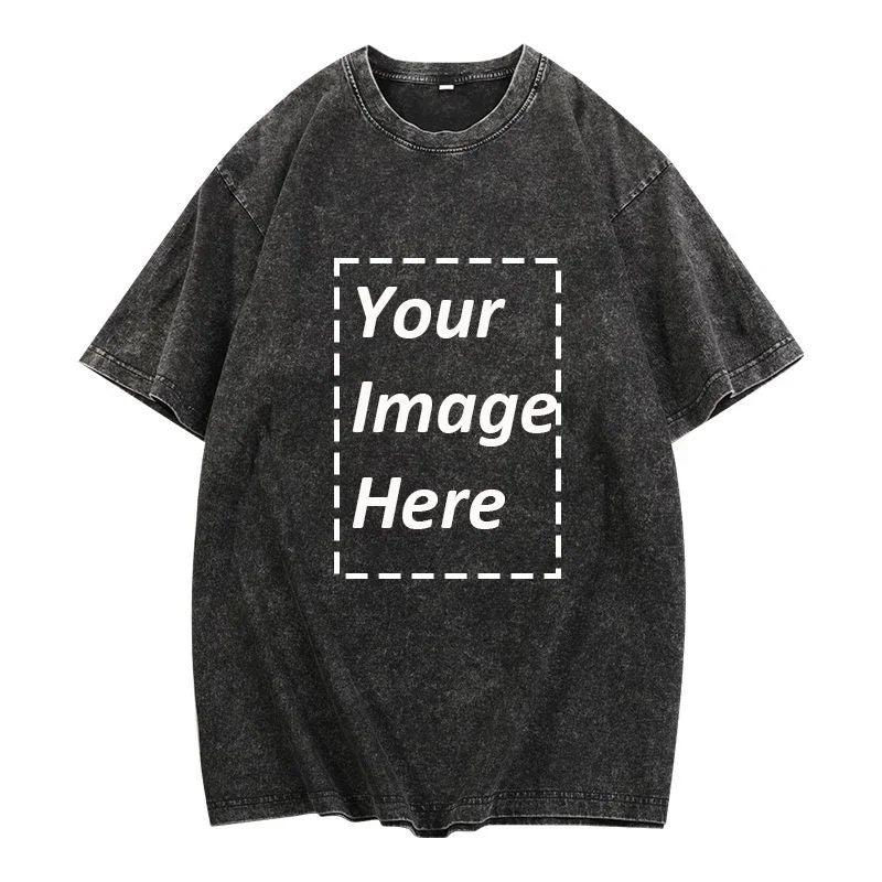 230g Heavy Men Women Washed Vintage Customized Print Oversized T-Shirts Street Hip Hop Punk Harajuku Casual Cotton Short EU Size