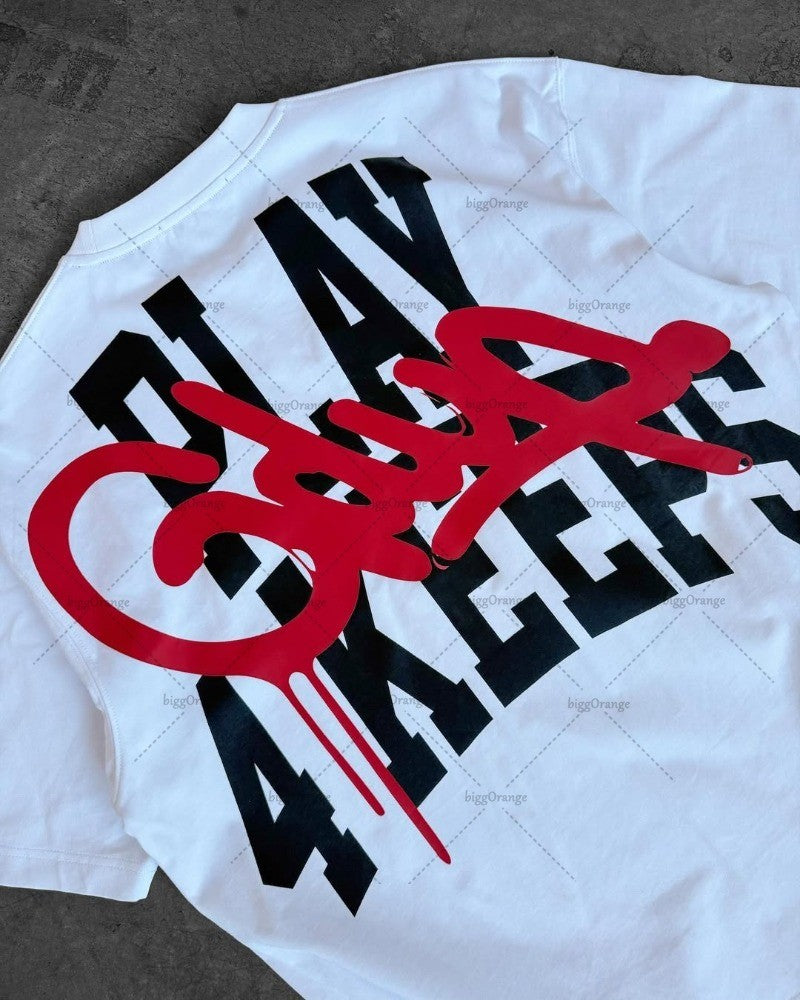 American High Street Fashion Clothing Harajuku Retro Letter Casual Loose T-shirt Men Street Hip-hop Fashion Oversized Top Women