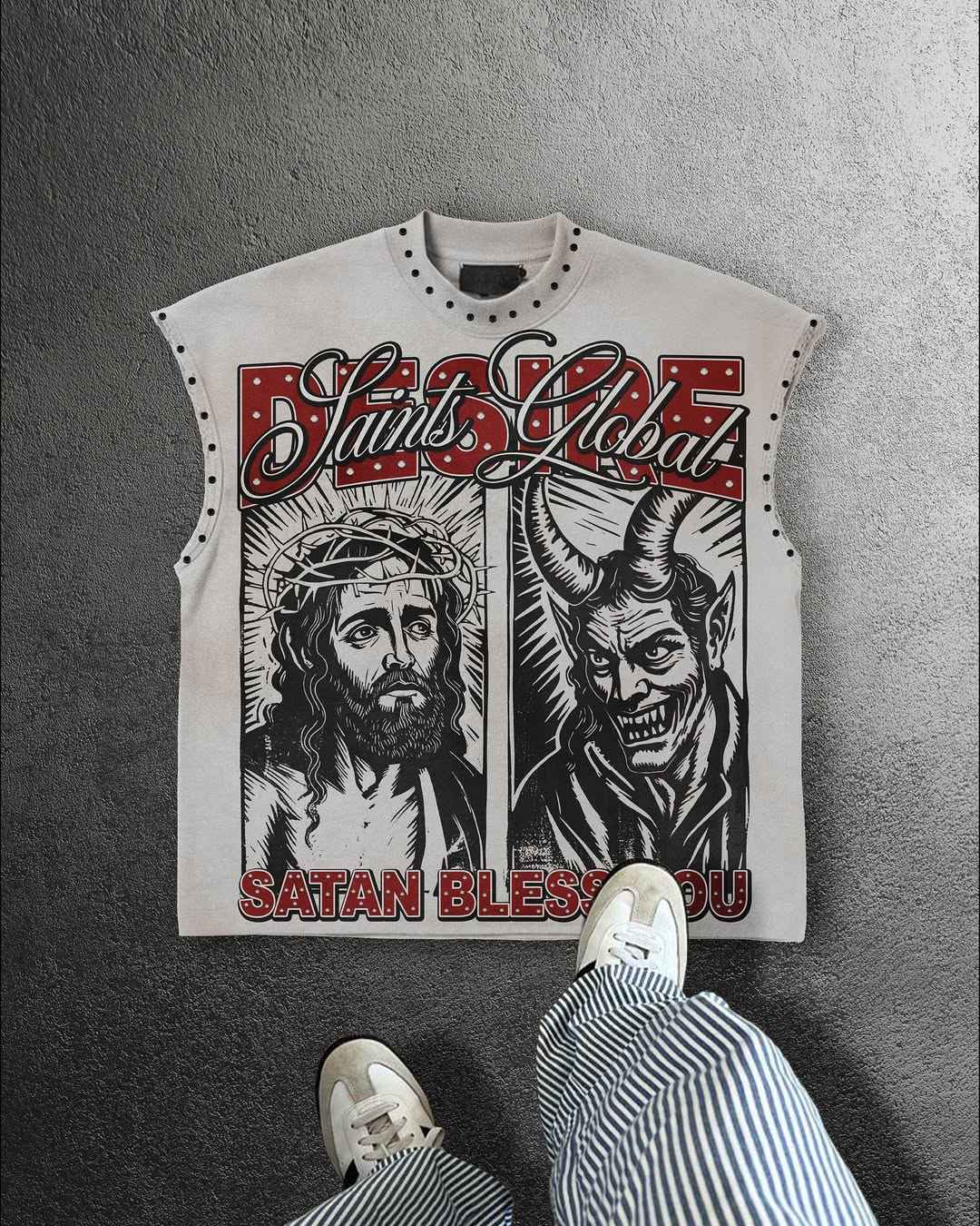 Y2K Popular Willow Nail Round Neck Vest T Shirt Retro Punk Hip Hop Oversized Printed Pure Tops Classic Loose Sleeveless T Shirt