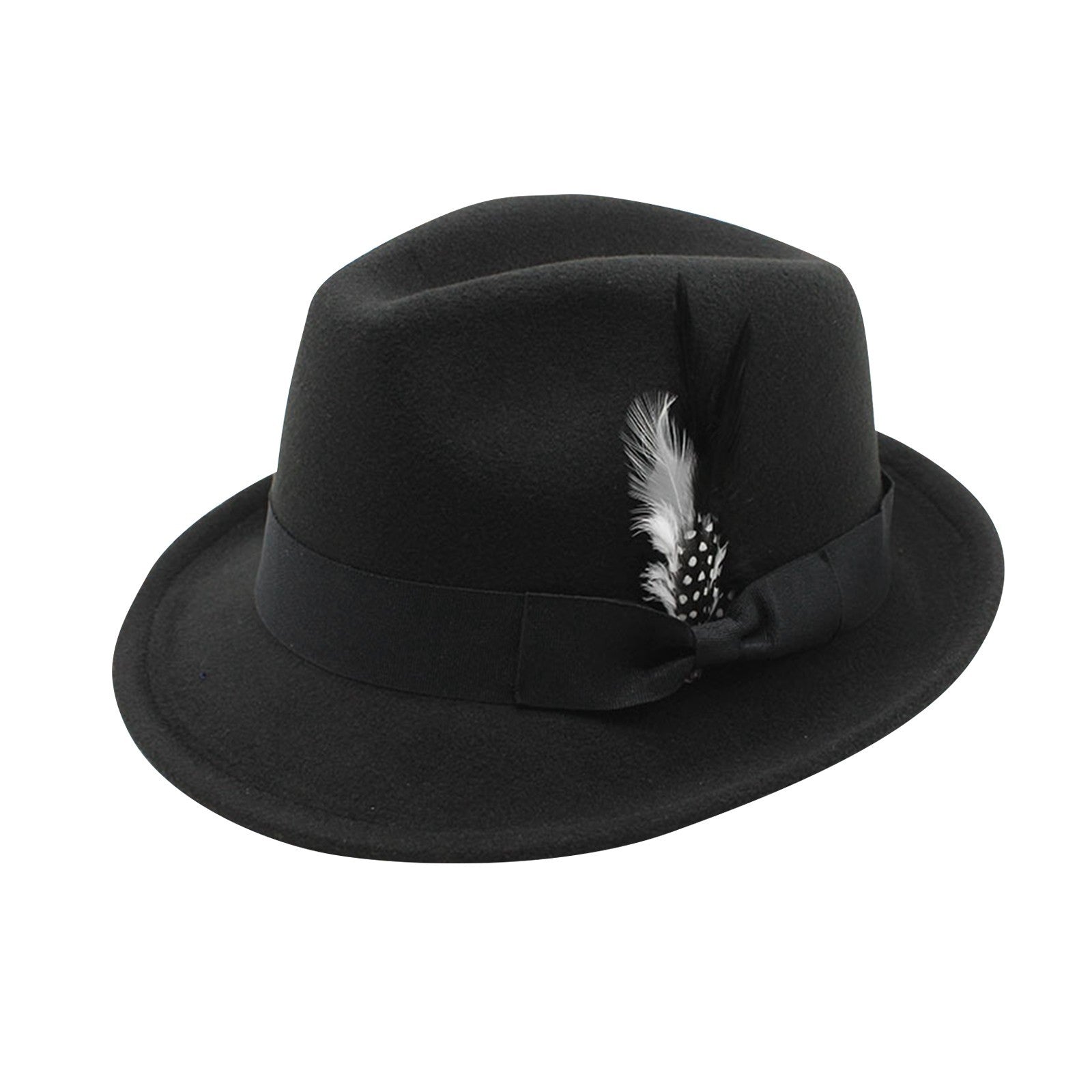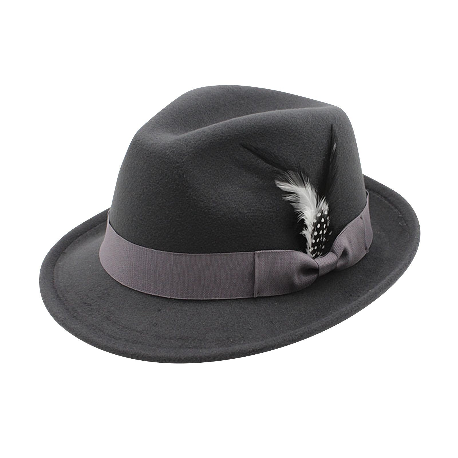 Vintage Curved Brim Felt Fedora Hat For Men Men Gentleman Hamburger cap Trilby Jazz Hat With Feather Church Pork Pie Hats