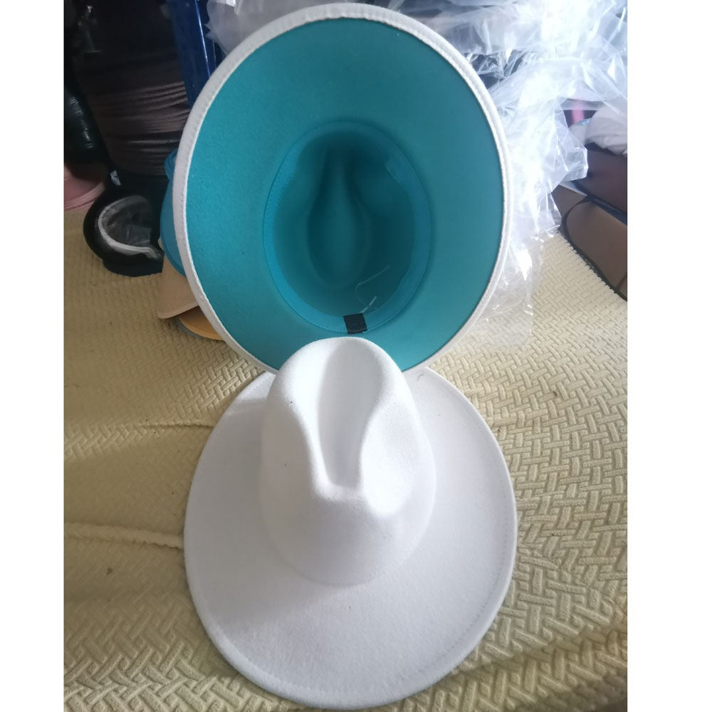 QBHAT Two-color Fedora Hat Women Men Wide Brim Felt Jazz Hat Ladies Party Top Cap Patchwork Chapeau Sombreros De Mujer 50 Colors