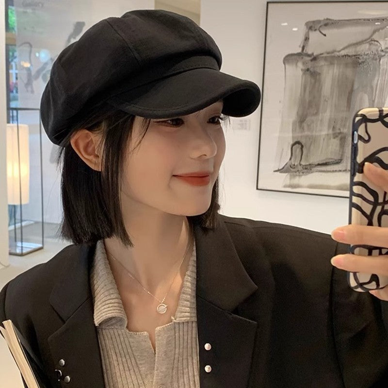 Autumn Winter Women's Genuine Sheep Leather Beret Vintage British Style Painter Hat Versatile Casual Real Leather Headwear