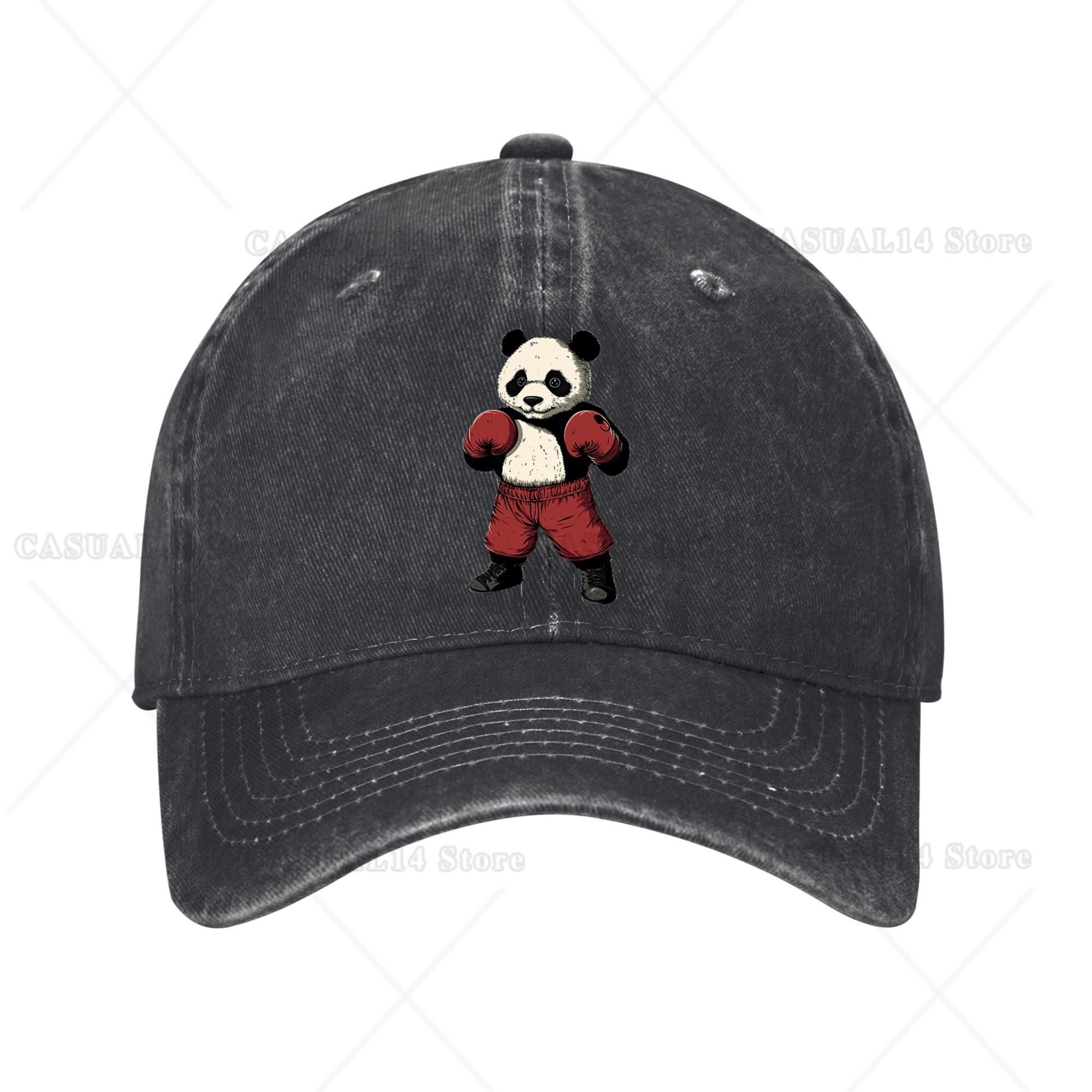 Boxing Panda Vintage Washed Cotton Baseball Caps Men Women Adjustable Unstructured Dad Hat