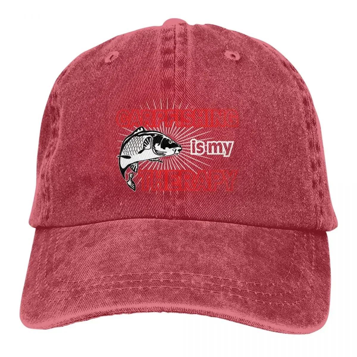 Washed Men's Baseball Cap Carpfishing Is My Therapy Trucker Snapback Caps Dad Hat Carp Fishing Fisher Hats