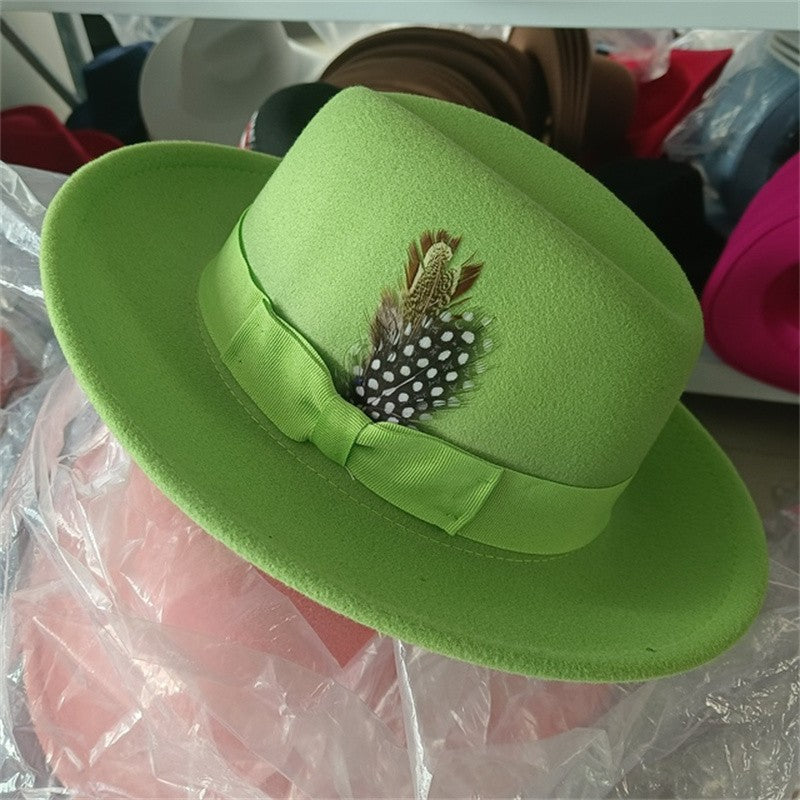 Men's fedora hat Men's and women's universal solid color fedora hat Women's 21 color wide brim jazz hat Autumn and winter Britis