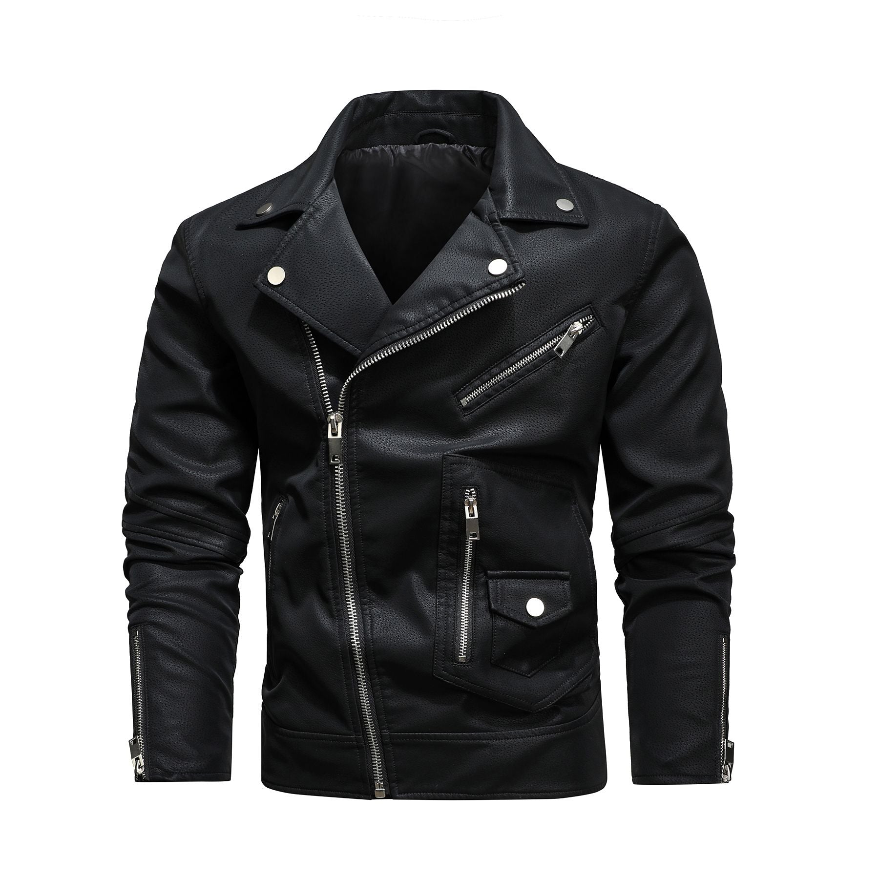 fashion Winter Winter Mens Leather Jacket Men Fashion Motorcycle PU Leather Jacket Cool Zipper Pockets Leather Coats Clothing