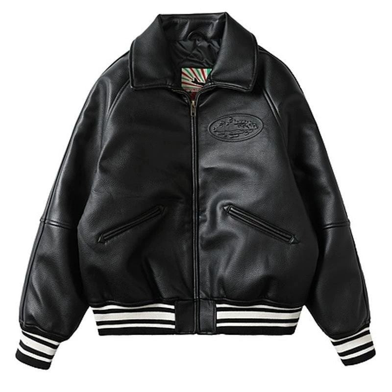 American New Fashion PU Leather Tide Brand Baseball Uniform Y2K Vintage Hip Hop Casual Loose Handsome Coat Men And Women