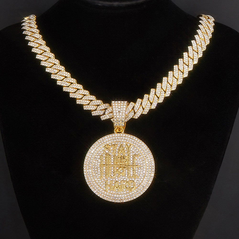 Hip Hop STAY HARD Letter Pendant Cuban Chain Necklace Punk Gold Color Iced Out Bling Necklaces Fashion Charm Men Women Jewelry