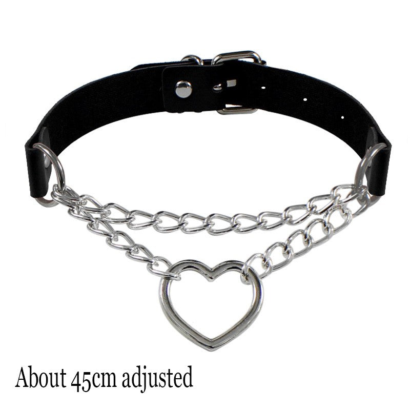 Woman Black Punk Choker Collar Necklace Sexy PU Leather Heart Lock Key Spike Chocker Gothic Cosplay Accessories Party Jewelry
