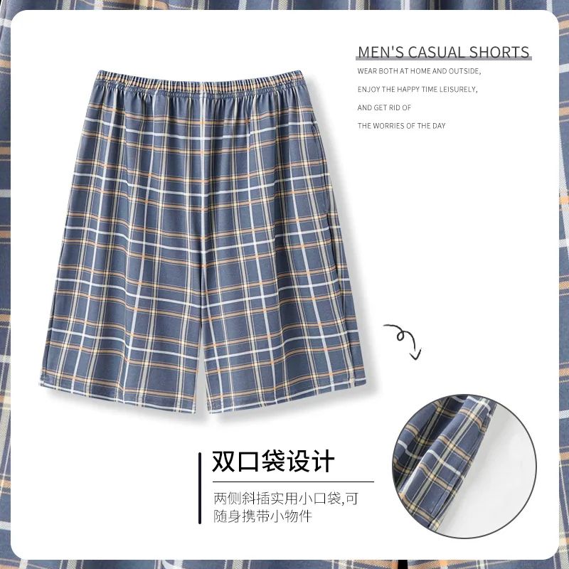 Summer new style solid color pajama pants adluts home loose cotton pajama men's sleep bottom elastic waist breathable shorts
