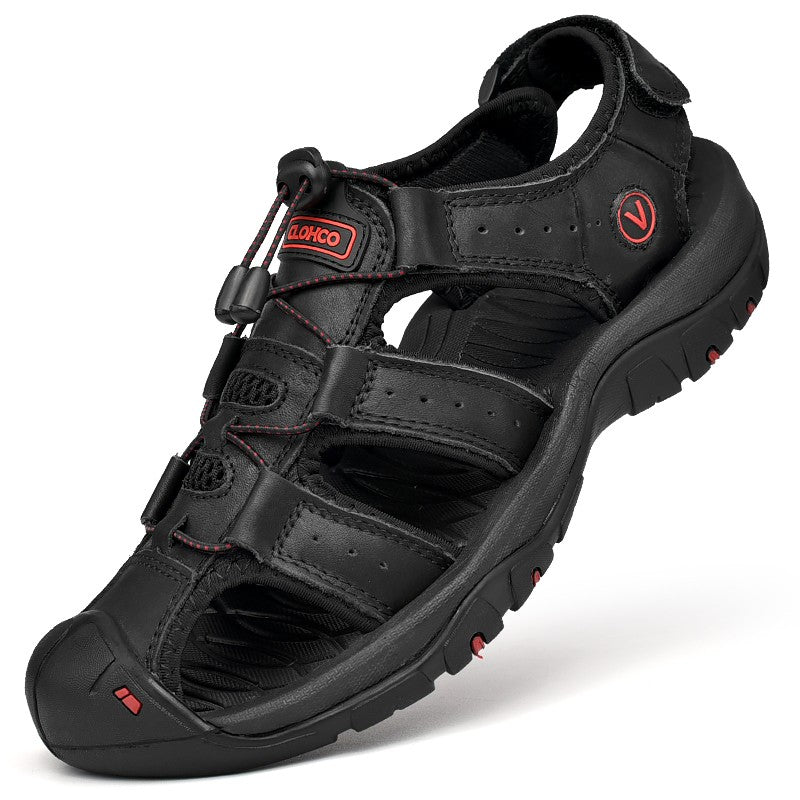 CLOHOO Men's Sandals Handmade Thick Bottom Rubber Breathable Casual Slip-On Beach Shoes Leather Upgraded Version