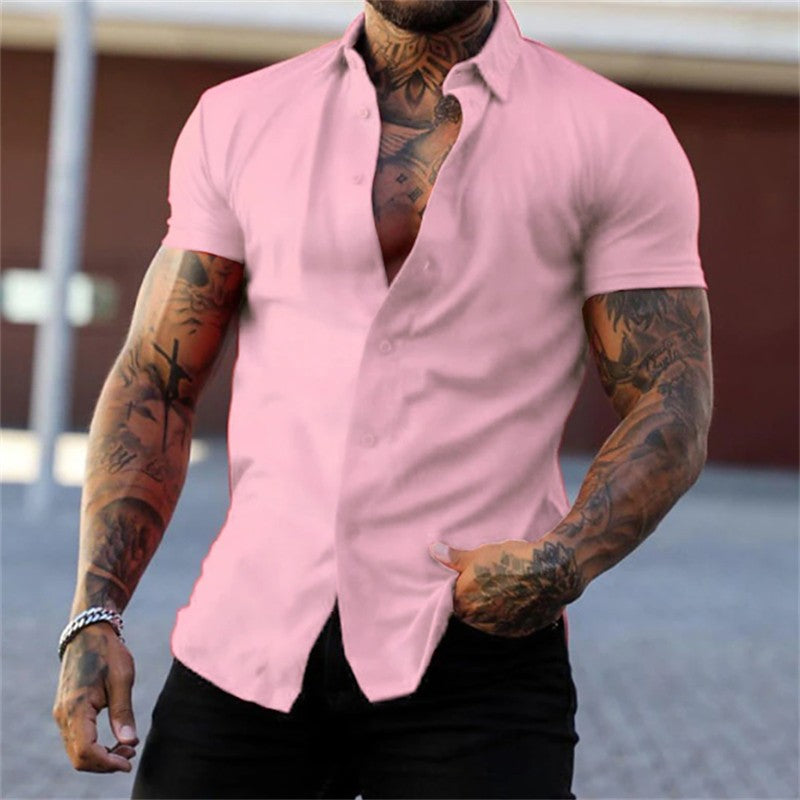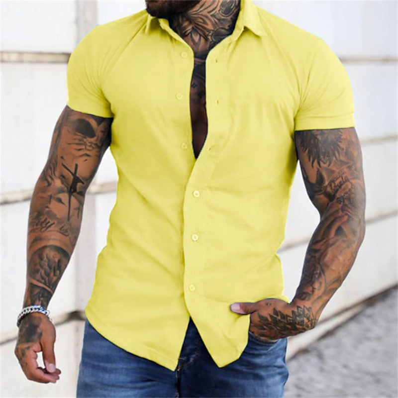 • Short sleeved lapel shirt elastic thin solid color sports casual cardigan business no iron shirt oversized xs-4xl