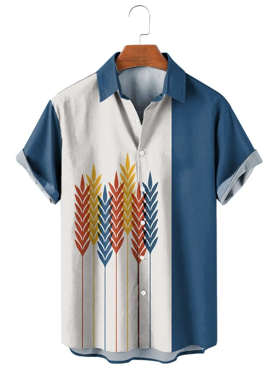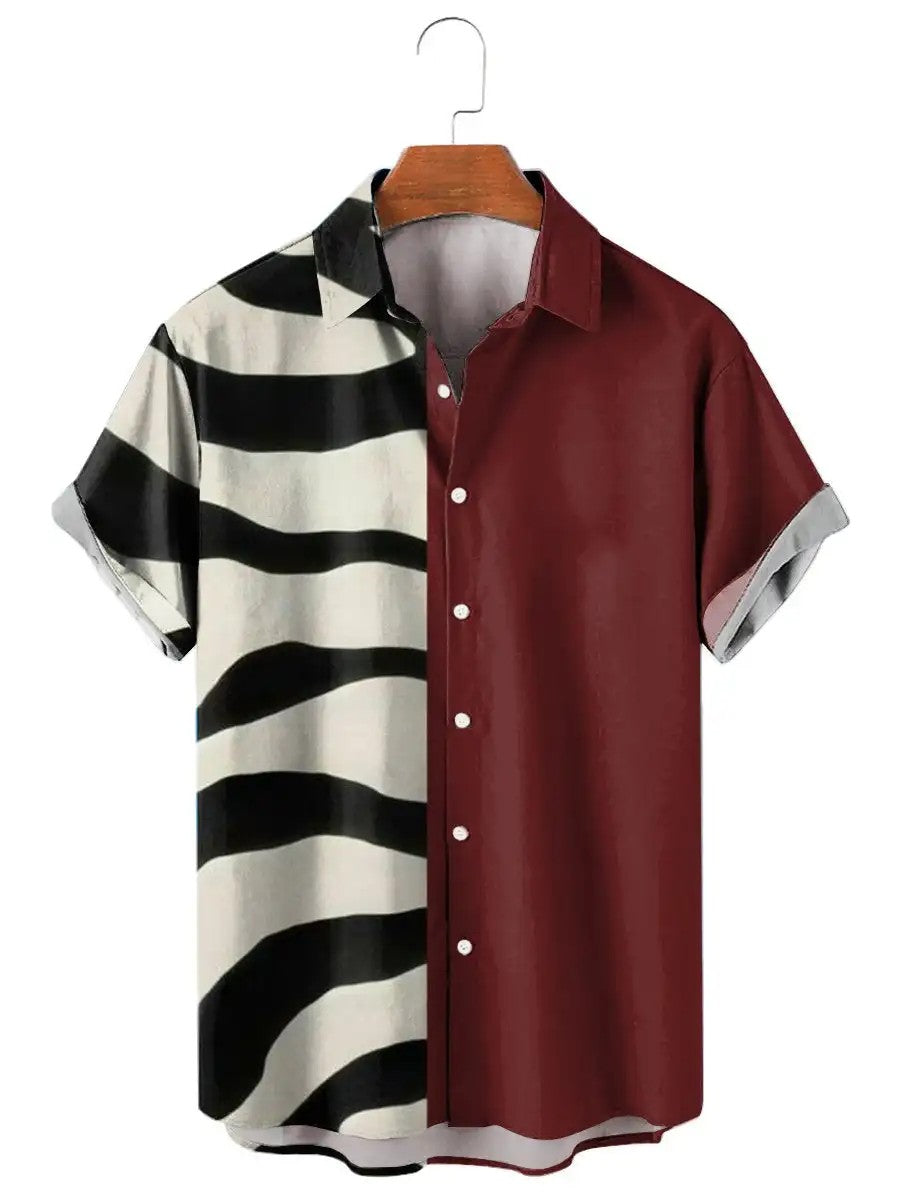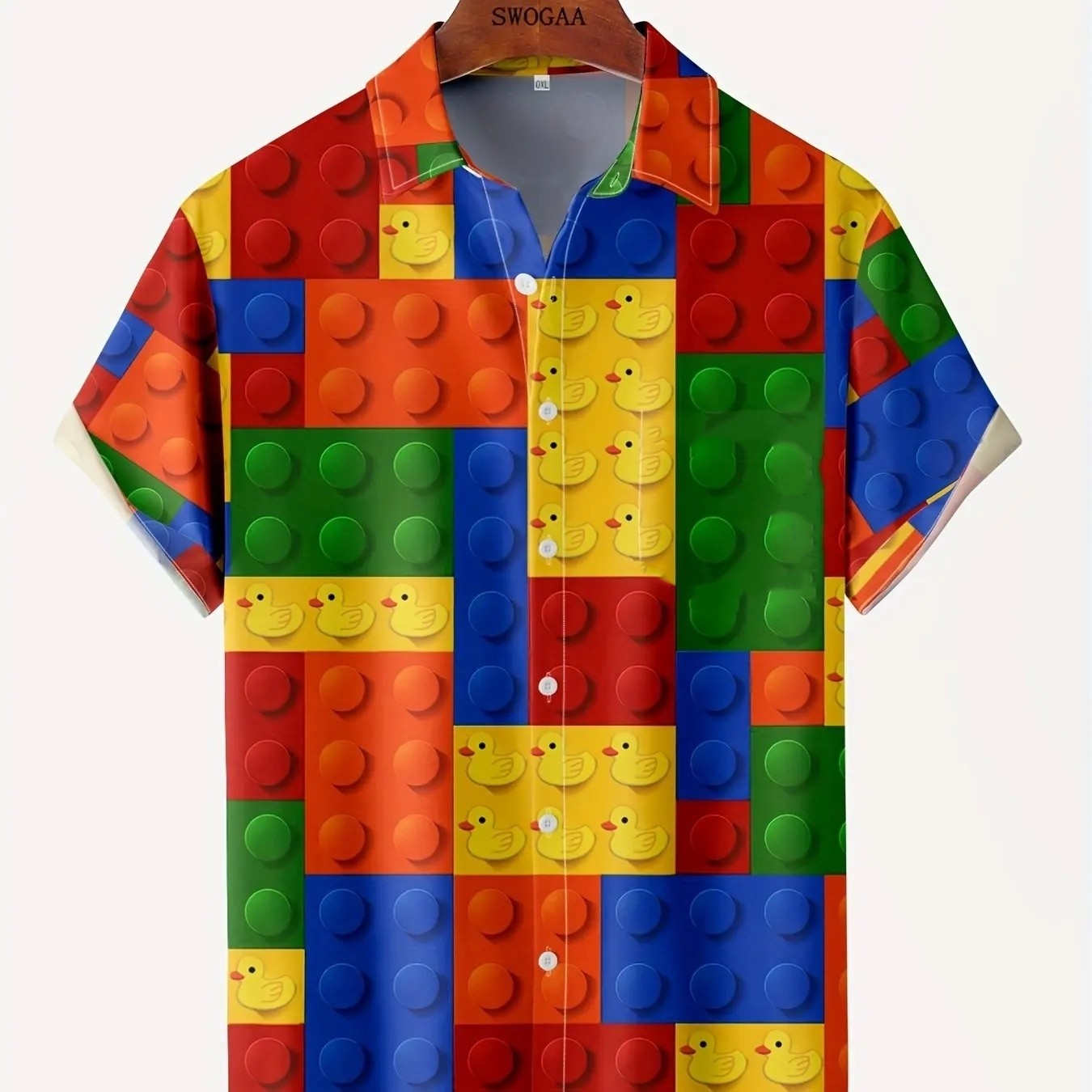 Men's Hawaiian Fashion Style Patchwork Plaid 3D Print Summer Shirt For Men Casual Short Sleeve Retro Funny Male Clothes Vintage