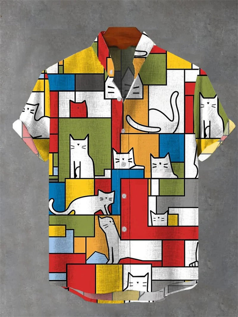 New Fashionable Luxury Hawaiian Holiday Beach Flower Cat Shirt 2025 Best Ethnic Style Clothing Camisa Hawaiana Hombre