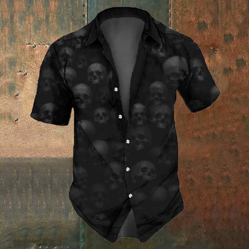 3d Skull Print Short Sleeve Shirt For Men Skull Shirts Street Fashion Man Clothing Gothic Tops Vintage Oversized Hawaiian Shirts