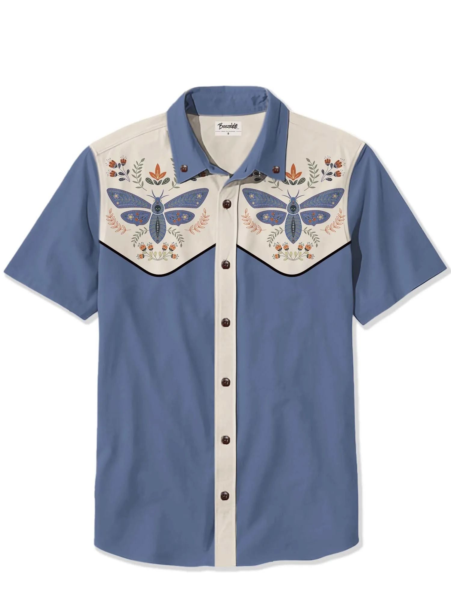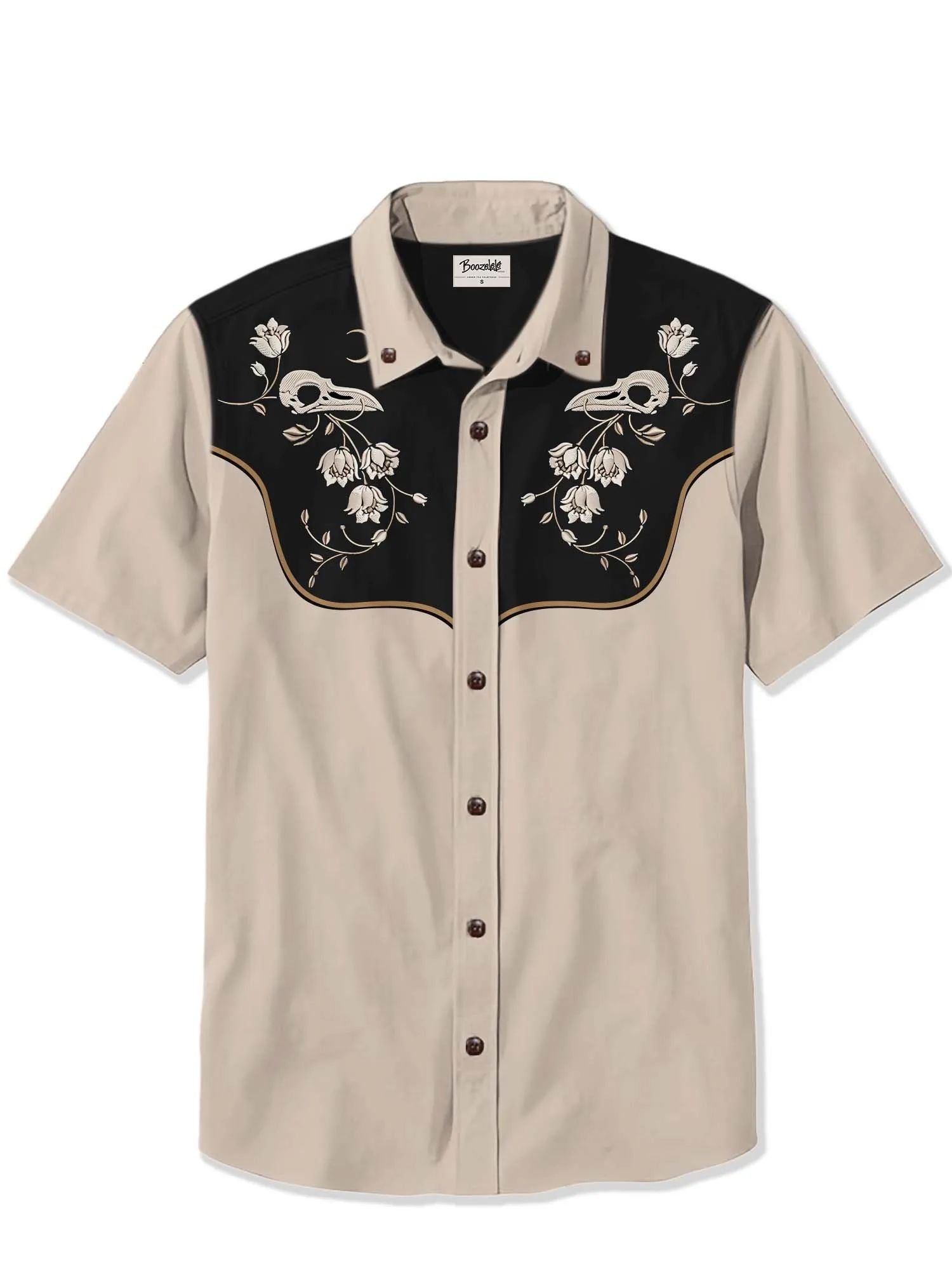 Men's Western Cowboy Style Short Sleeve Shirt Comfortable Breathable Summer Art Button Top Camisas Hawaianas Divertidas