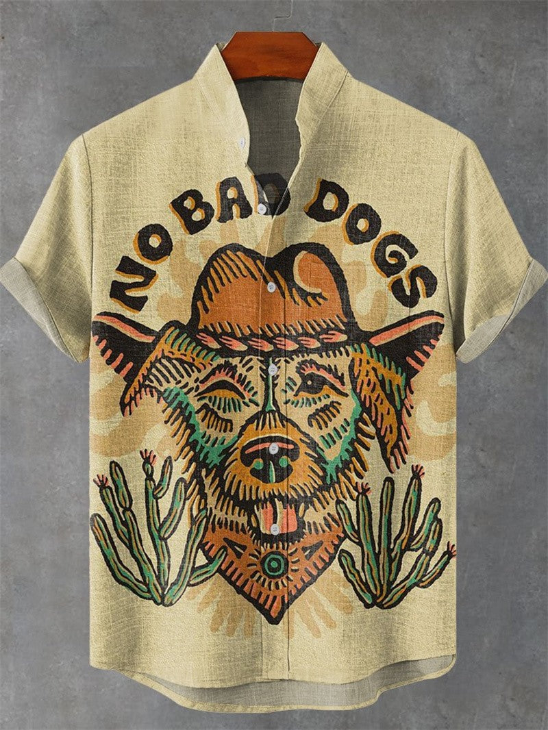 Men's Linen Short Sleeve Shirt Casual Top Single Button Vintage Cartoon And Art Cat Summer Print Top