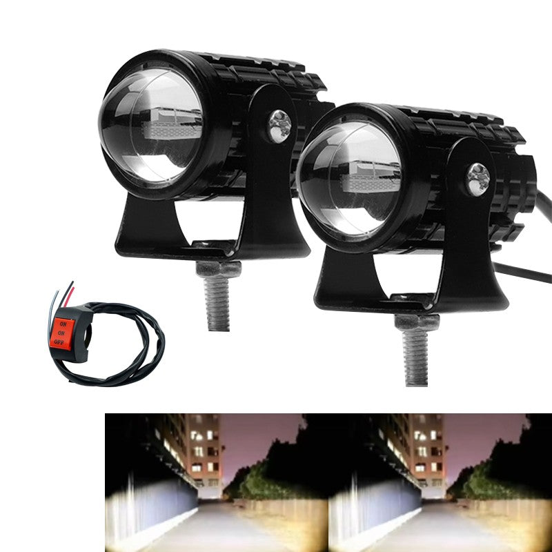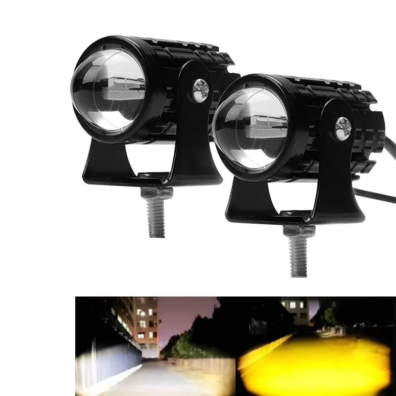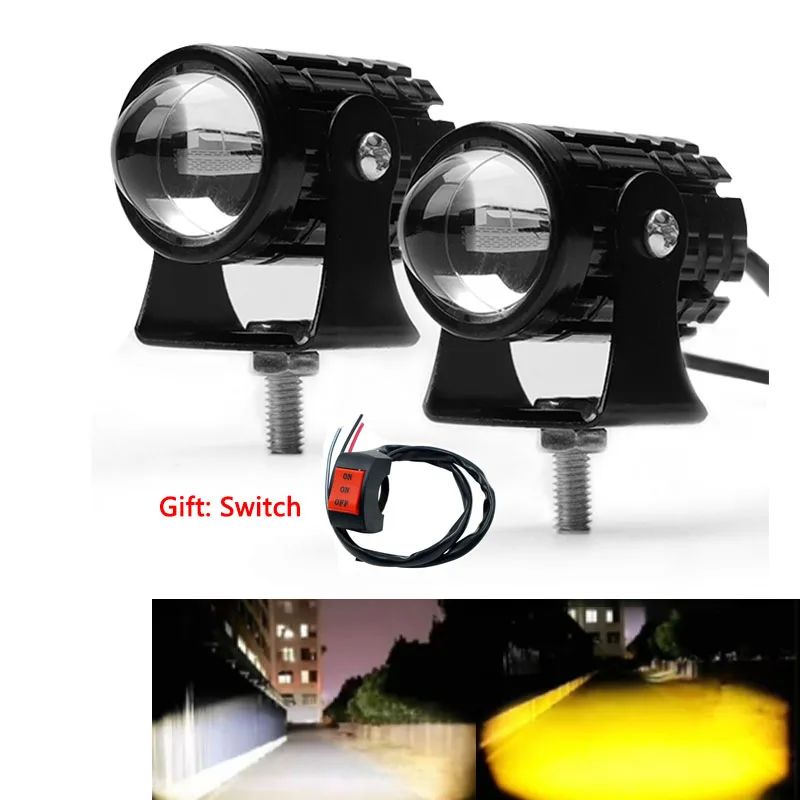 Universal Motorcycle LED Headlight Projector Lens Dual Color ATV Scooter Driving Lamp Fog Light Auxiliary Spotlight Lamp Switch
