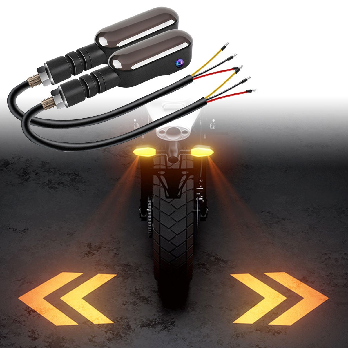 1Pair Motorcycle LED Underbody Turn Signal Light Colorful 12V Sequential Flowing Flash Indicator Lights Tail Lamp Projector Lamp