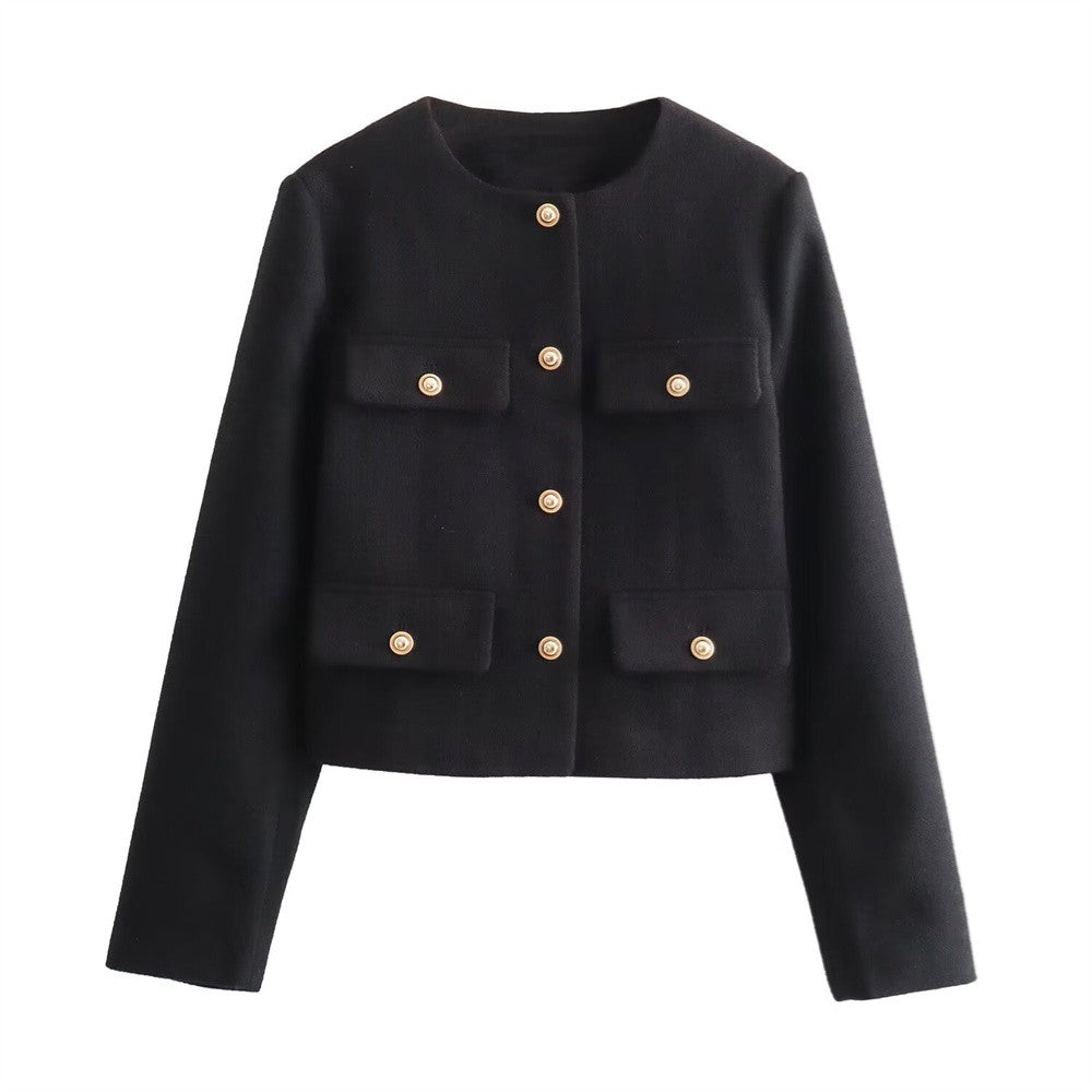 UNIZERA Winter New Product Women's Fashion and Casual Versatile Round Neck Flip Decoration Short Suit Coat