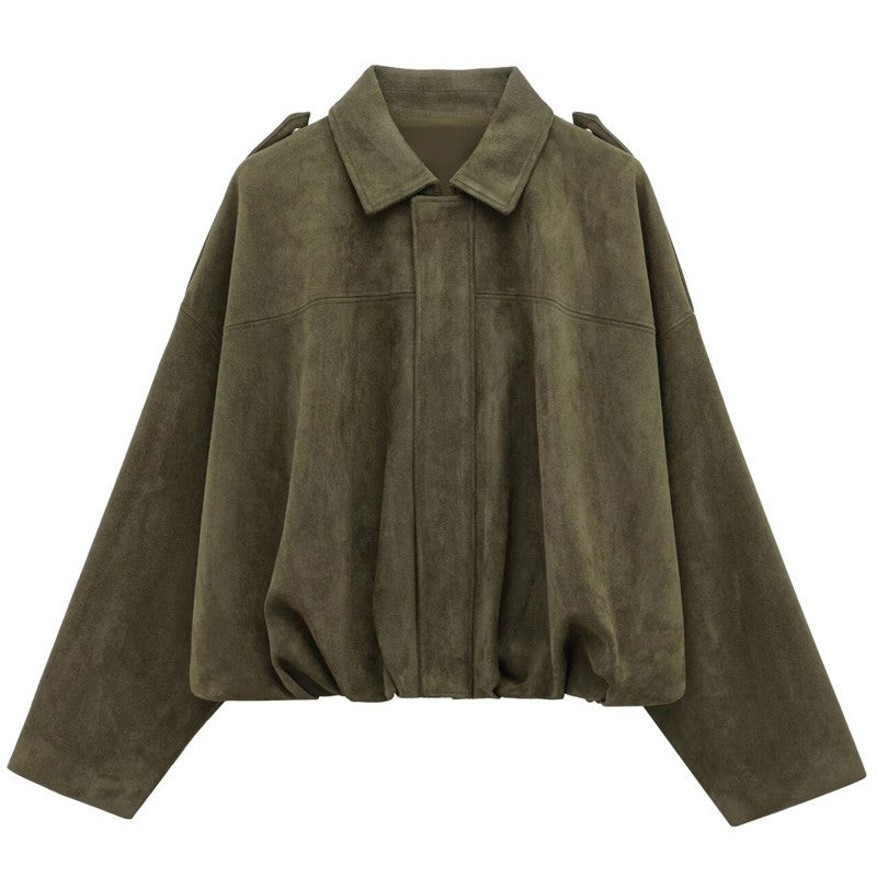 HXAO Women's Bomber Jacket Lapel Long Sleeve Zipper Suede Jacket Women 2025 High Street Cropped Racing Jackets Coats Outerwears