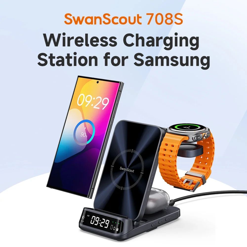 SwanScout 708S Charging Station for Samsung S25 S24 Ultra S23 Z Flip 7 Fold 6 5 Wireless Charger for Galaxy Watch 8 7 for Buds 3