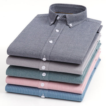 Fashion hight qulity 100%cotton casual long-sleeve shirts for men slim fit formal plain shirt houndstooth plaid top Pink clothes
