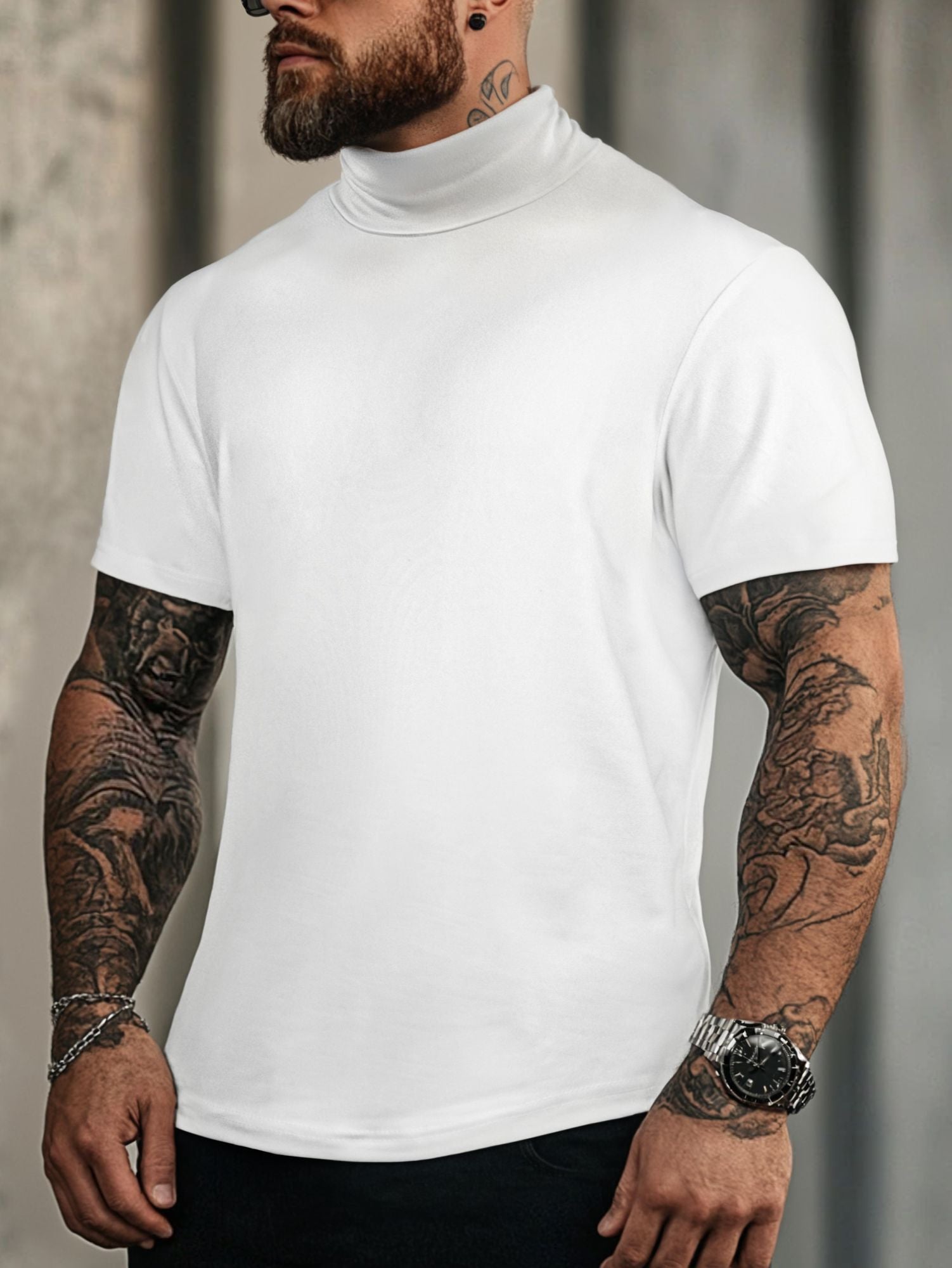 New Bottom Shirt Tees Tops Men Summer Casual Sports Workout Daily Plain High Neck Short Sleeve T-shirt Male Streetwear Clothes