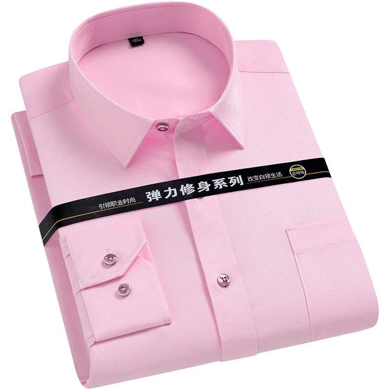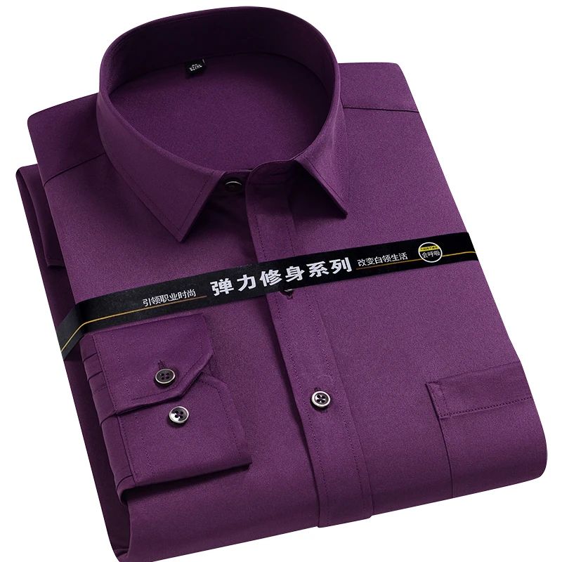 Men's Strech Solid Dress Shirt Anti-Wrinkle Long Sleeve Plain Casual Shirts Male Regular Fit Non-iron Easy Care Work Clothes Man