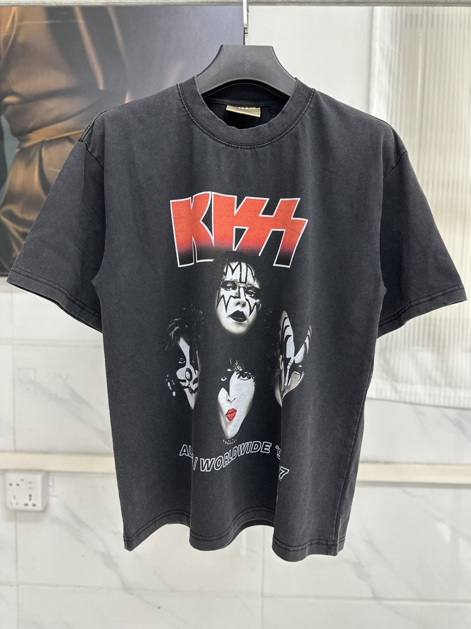 KISS Rock Band Tee Vintage Streetwear Portrait Print Best Quality Cotton Casual Oversized Tops T-Shirt For Men Unisex