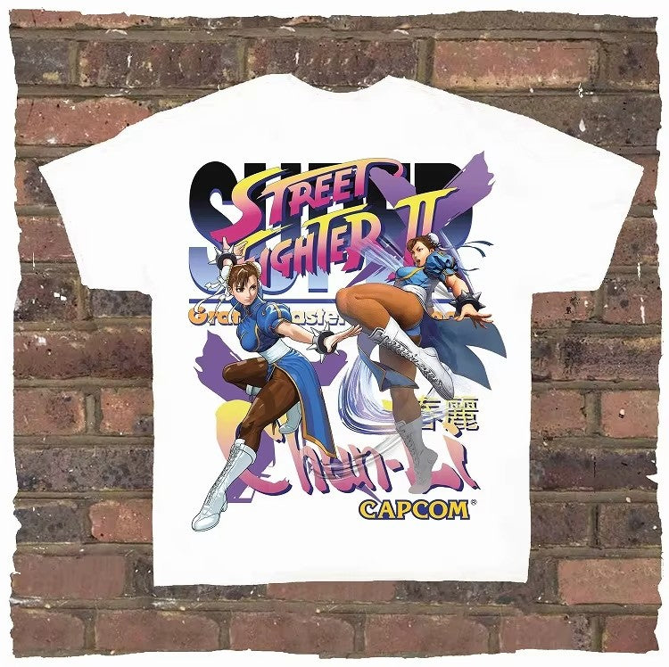 Game Spring Street Fighter, Rock and Rap, Loose High Street, High-quality Men's T-shirts, Women's T-shirts, Couple Styles