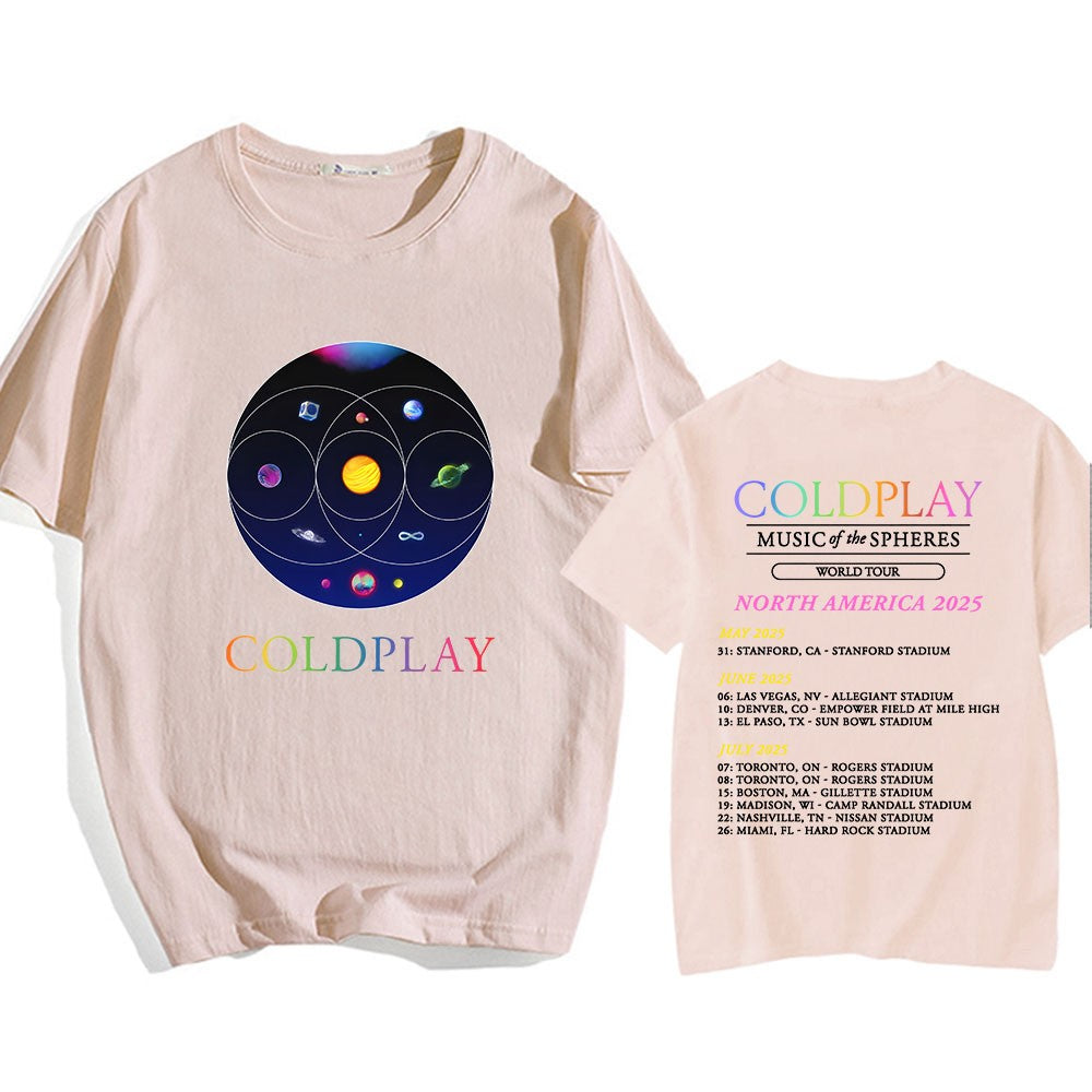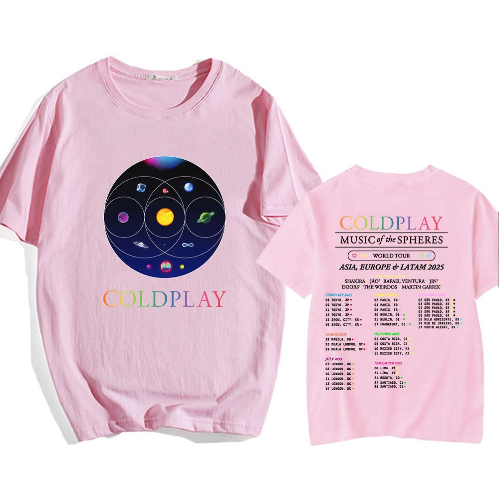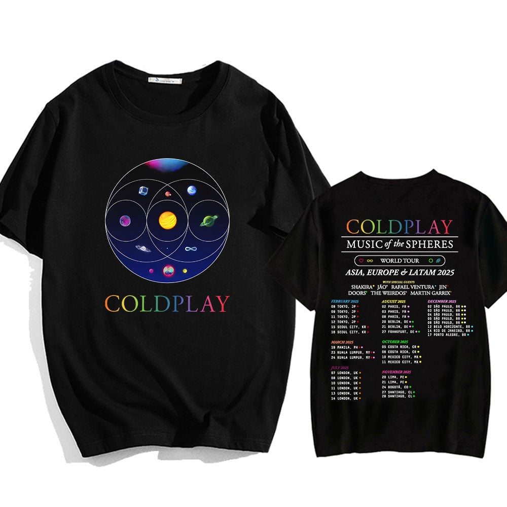 Cold-play Music of The Spheres World Tour 2025 Tshirts Cotton Tees Heavy Mental Fashion Graphic T-shirt Short Sleeve Unisex Tops