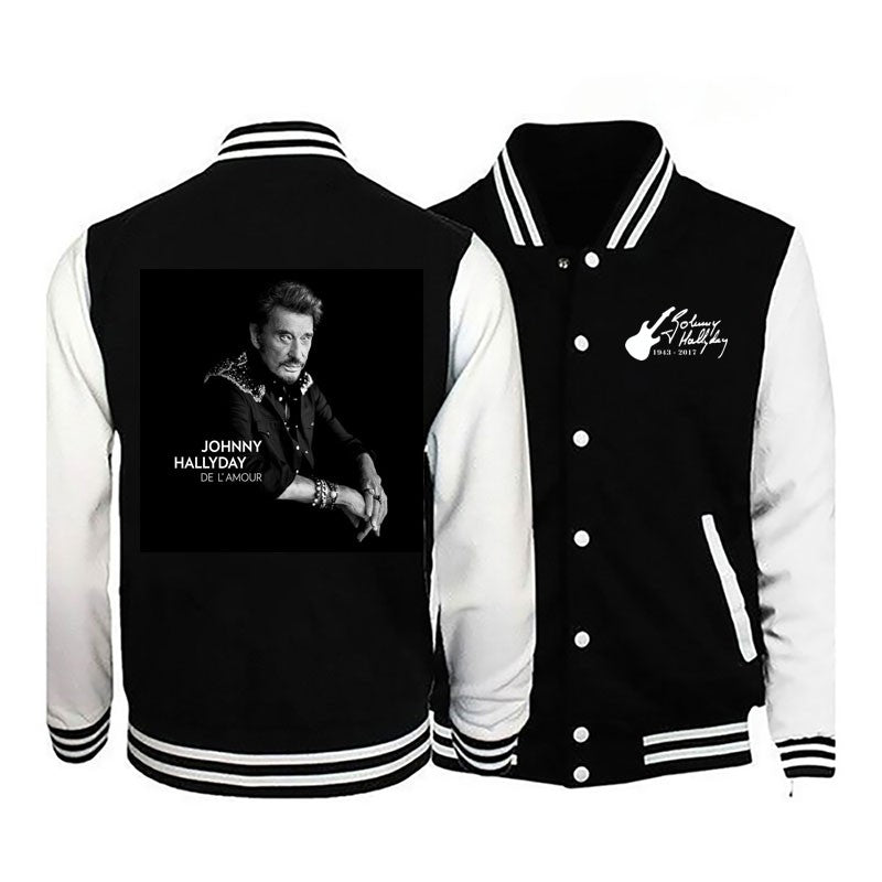2024Johnny Hallyday nova jaqueta bomber masculina de manga comprida casual jaqueta de uniforme de beisebol