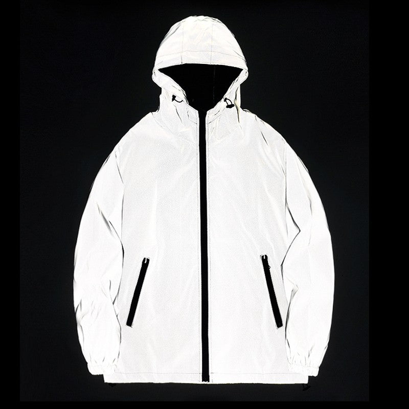 NEW SIZE Night Reflective Jackets Double Fabric Windbreaker Hooded Jacket Men Hip Hop Dancer Waterproof Zipper Coats Outwear