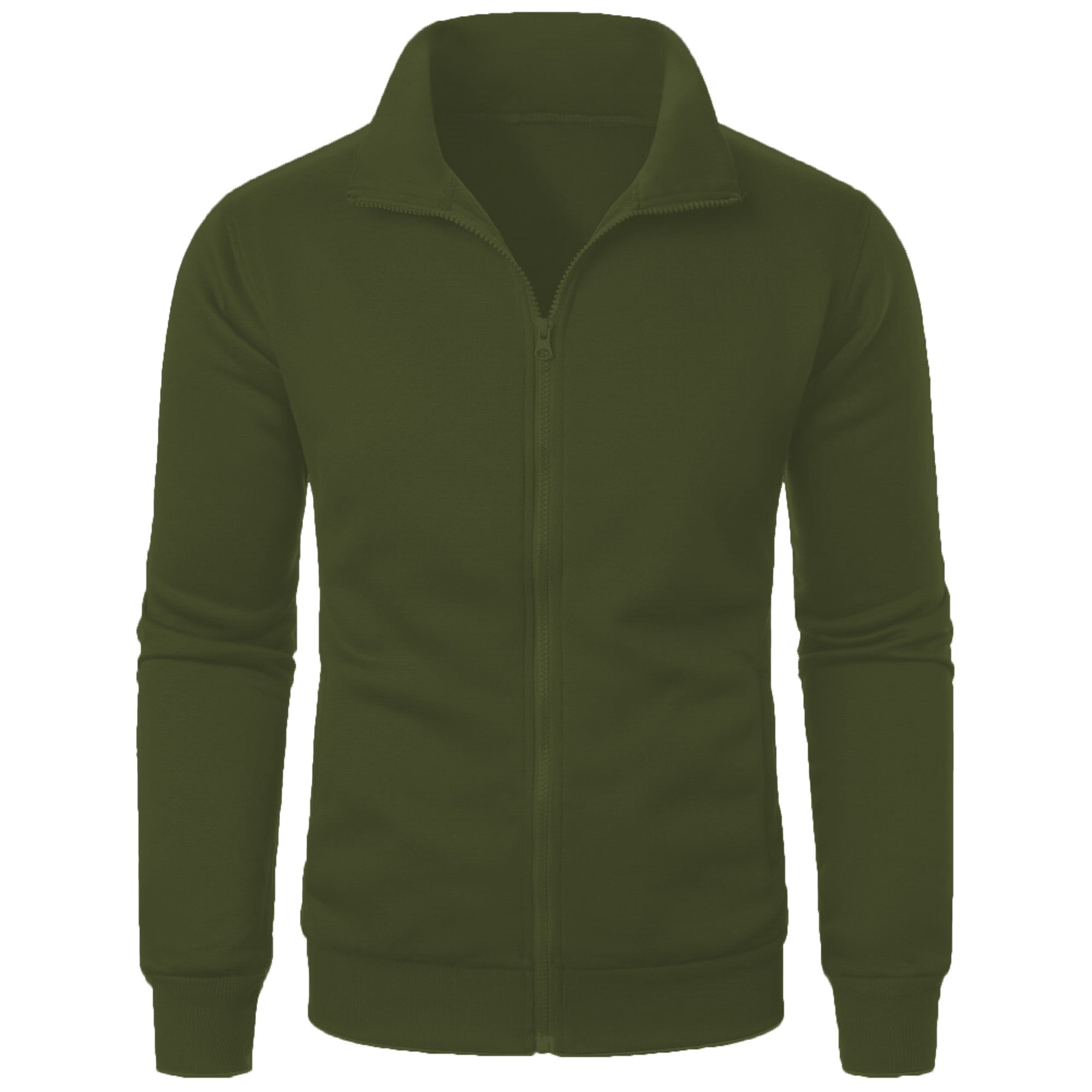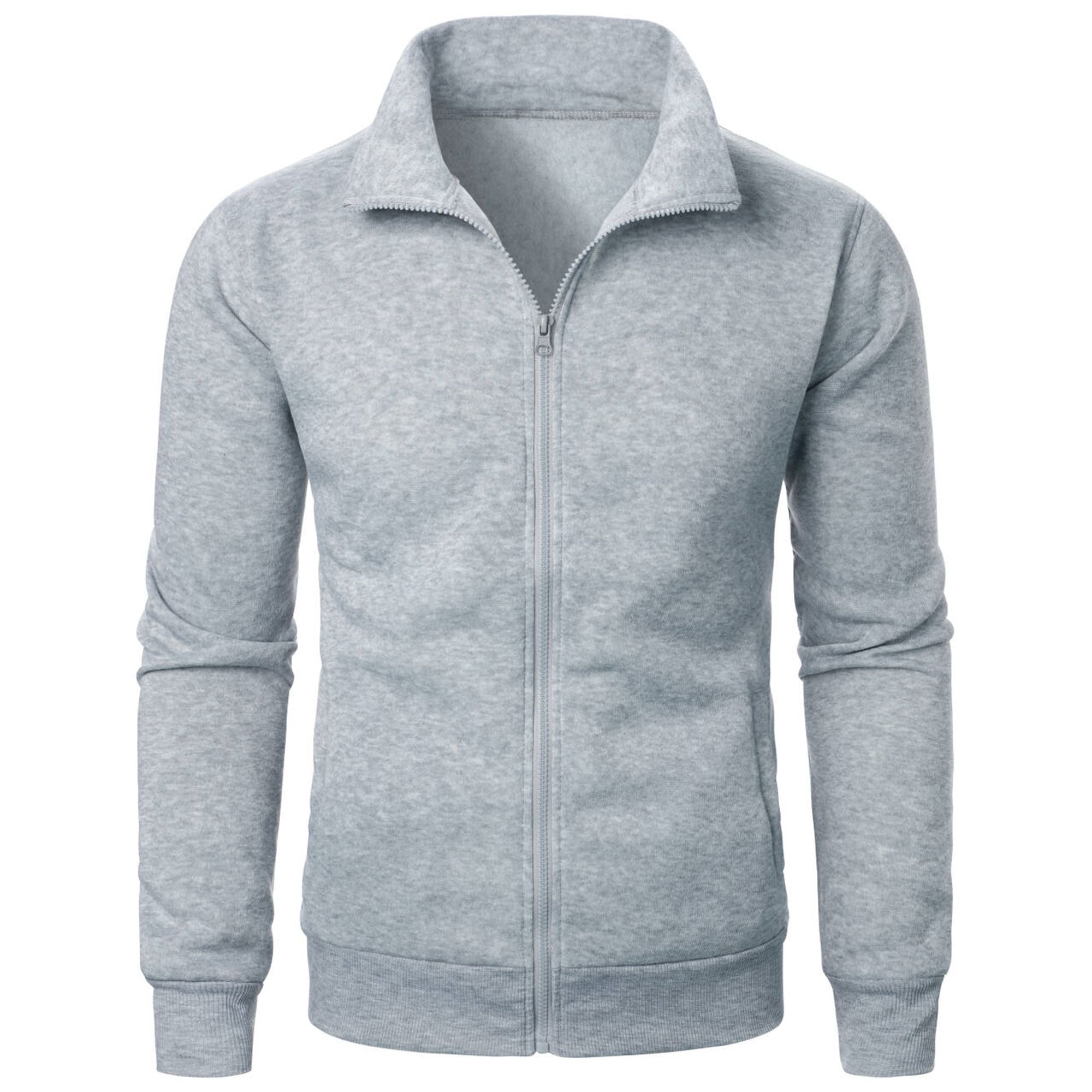 Men's casual sports zipper stand collar hoodie coat men's solid color cardigan